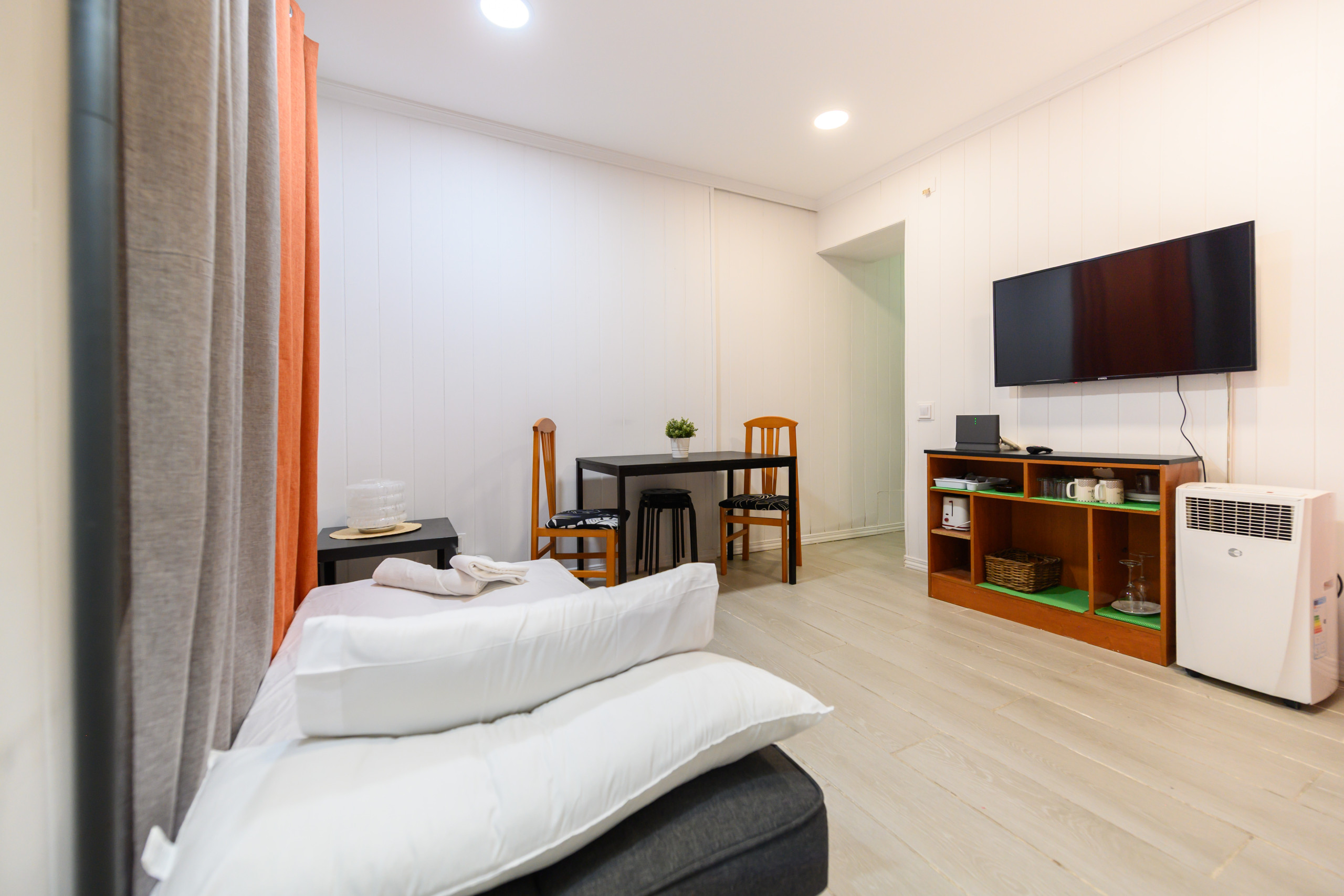 In the living room, you will find a comfortable single sofa bed, perfect for accommodating a third guest. Additionally, the living room has a smart TV and high-speed wifi access so you can enjoy your favourite programmes and stay connected with your friends and family.