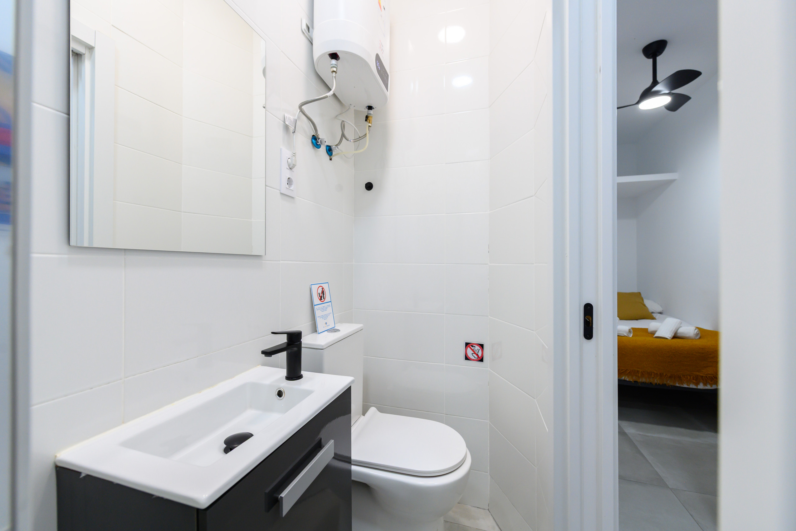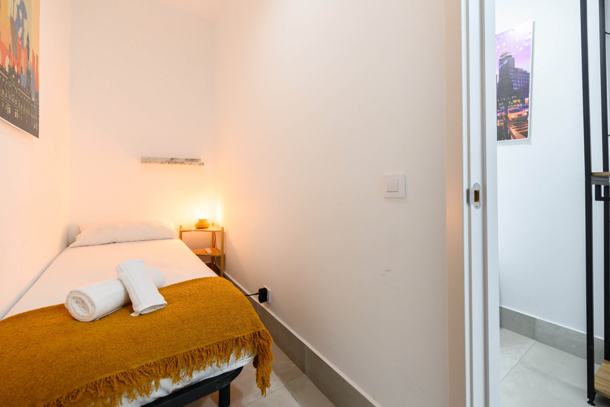 The bedroom is equipped with a comfortable double bed and bedding to ensure a perfect night's rest. The bathroom has a shower tray so you can enjoy a relaxing shower after a long day exploring the city.