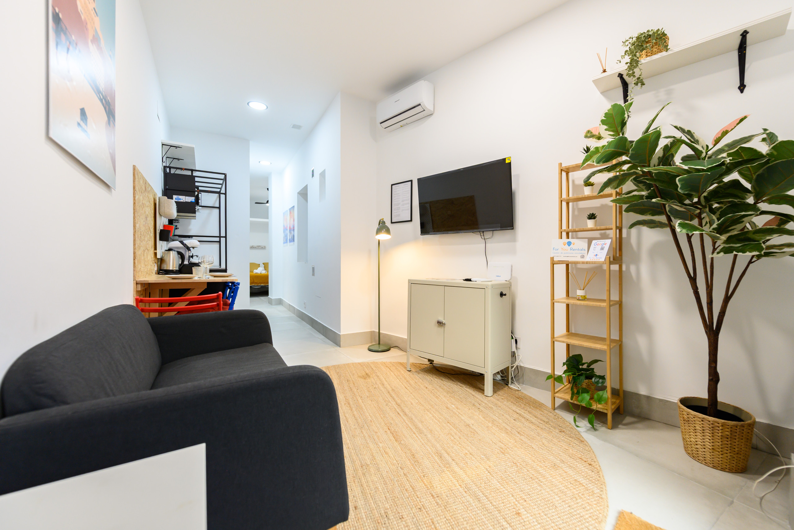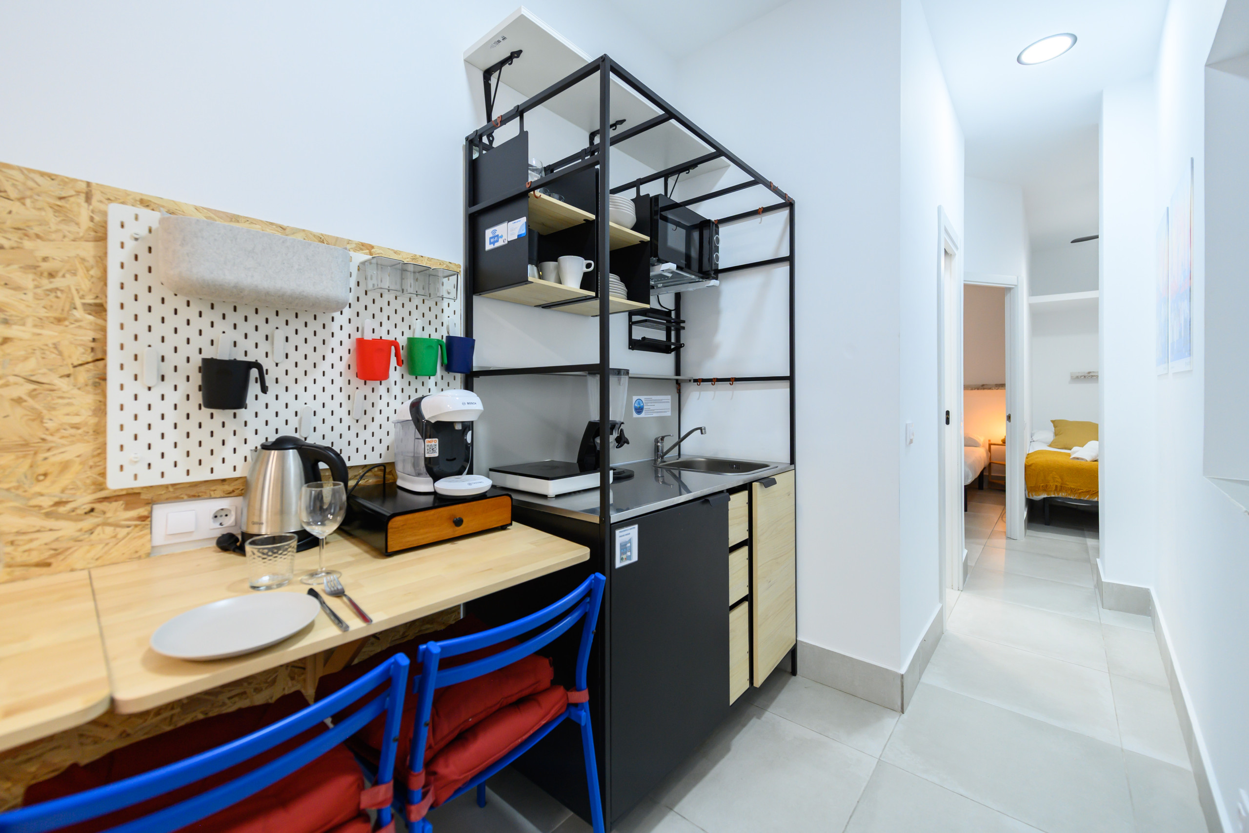 The kitchen is fully integrated and equipped with everything you need to cook your own meals during your stay, from utensils to appliances. Moreover, the apartment has small details that will make you enjoy an unbeatable stay, such as warm and cosy lighting and everything you need to relax and enjoy your free time.