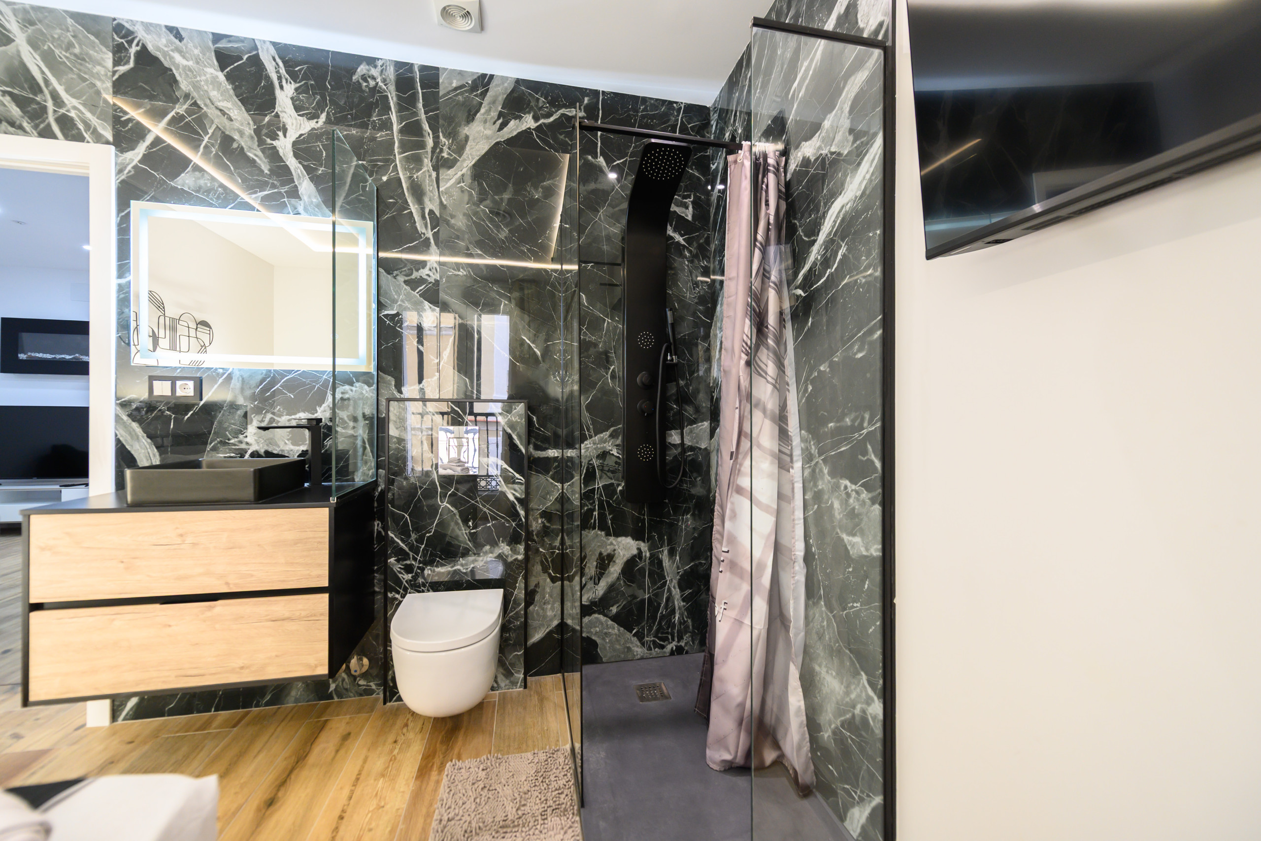 Upon entering the apartment, you will be greeted by a living-dining room, where attention to detail and refined design are evident in every corner. The carefully selected furniture and modern decorative touches create a cosy and sophisticated environment. Additionally, the living room features a comfortable sofa bed that easily transforms into an extra bed to accommodate additional guests.