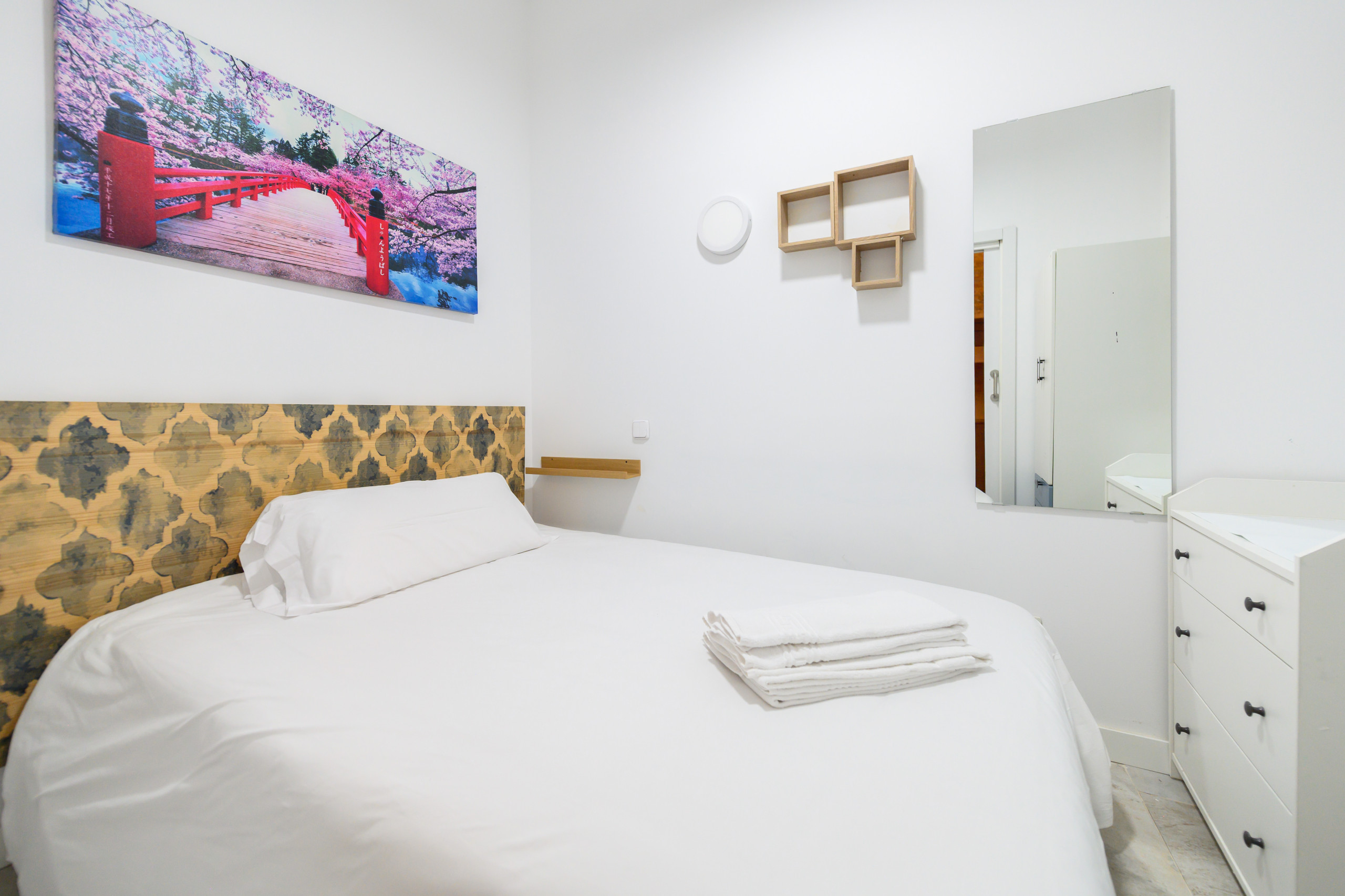 • 1 bedroom: double bed, wardrobe, mirror, and dresser.