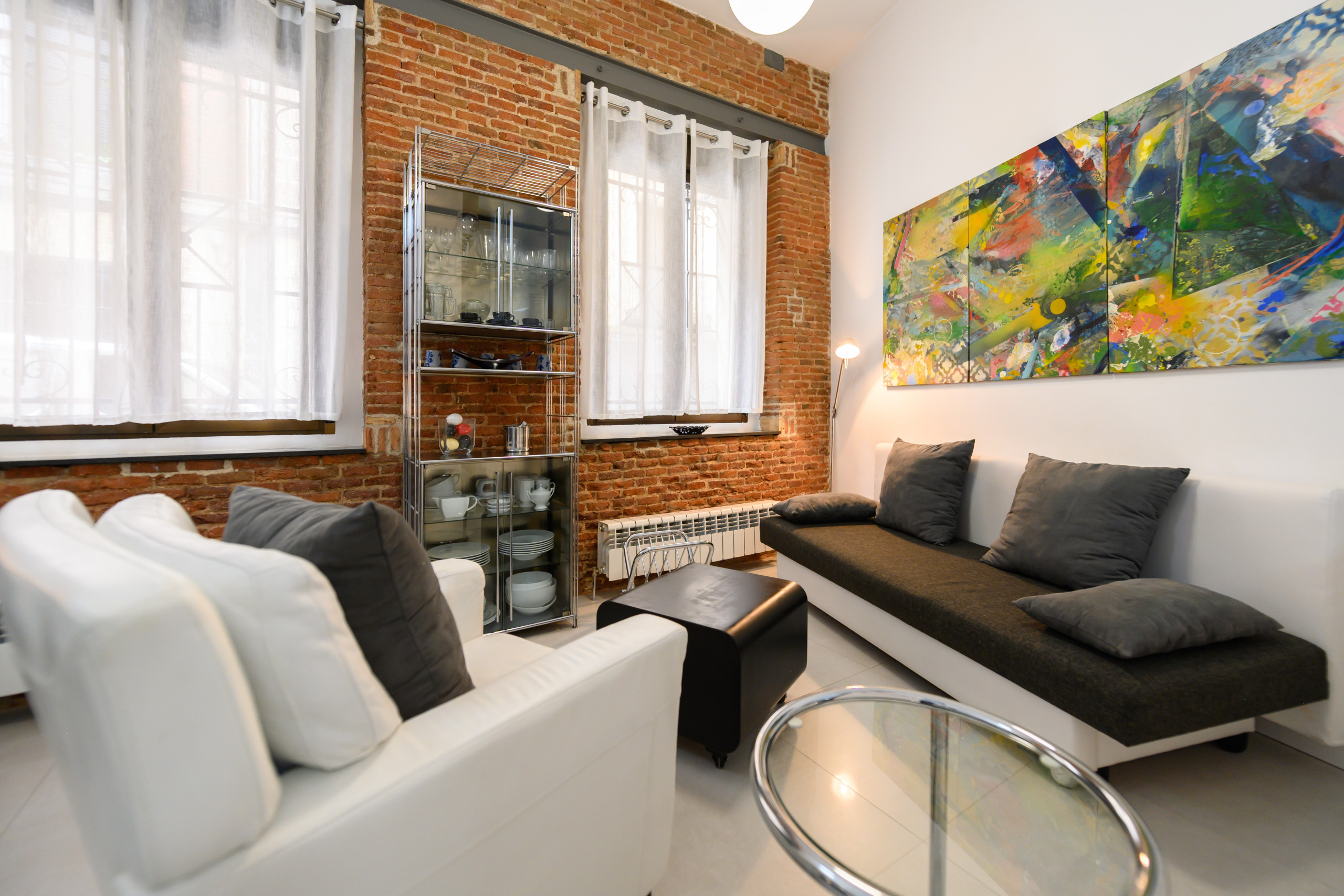 - The living room is a versatile and bright space, equipped with a high-quality sofa bed, ideal for relaxing after a busy day.