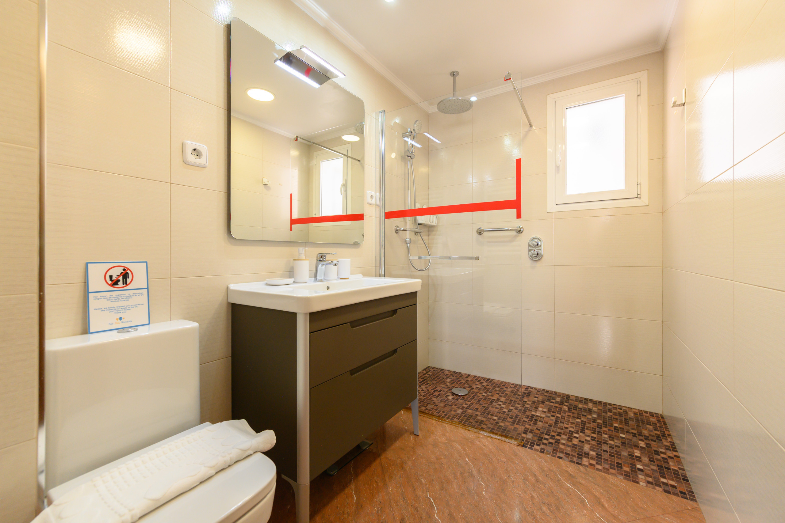 The complete bathroom, equipped with a shower tray, provides everything you need for your personal hygiene.