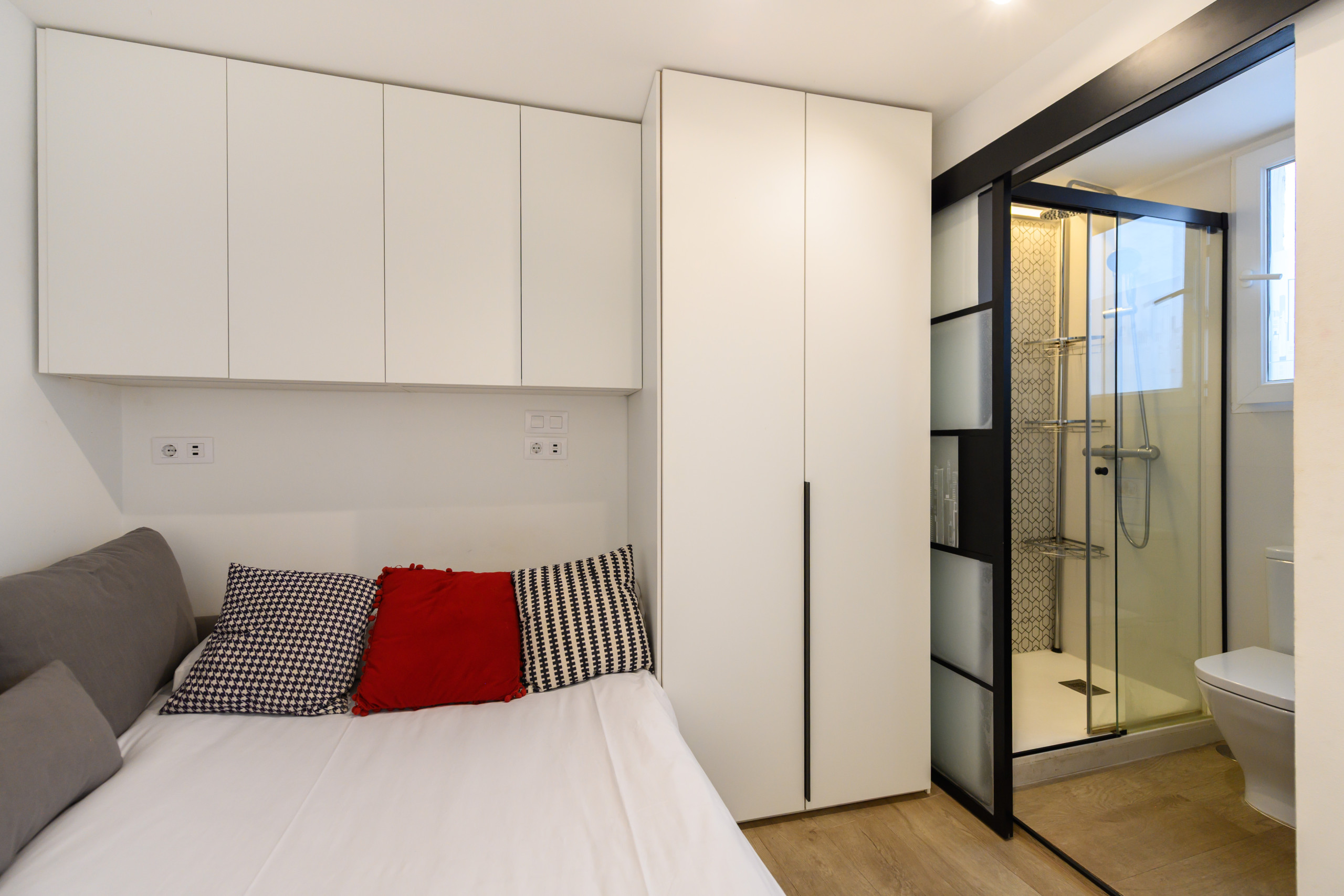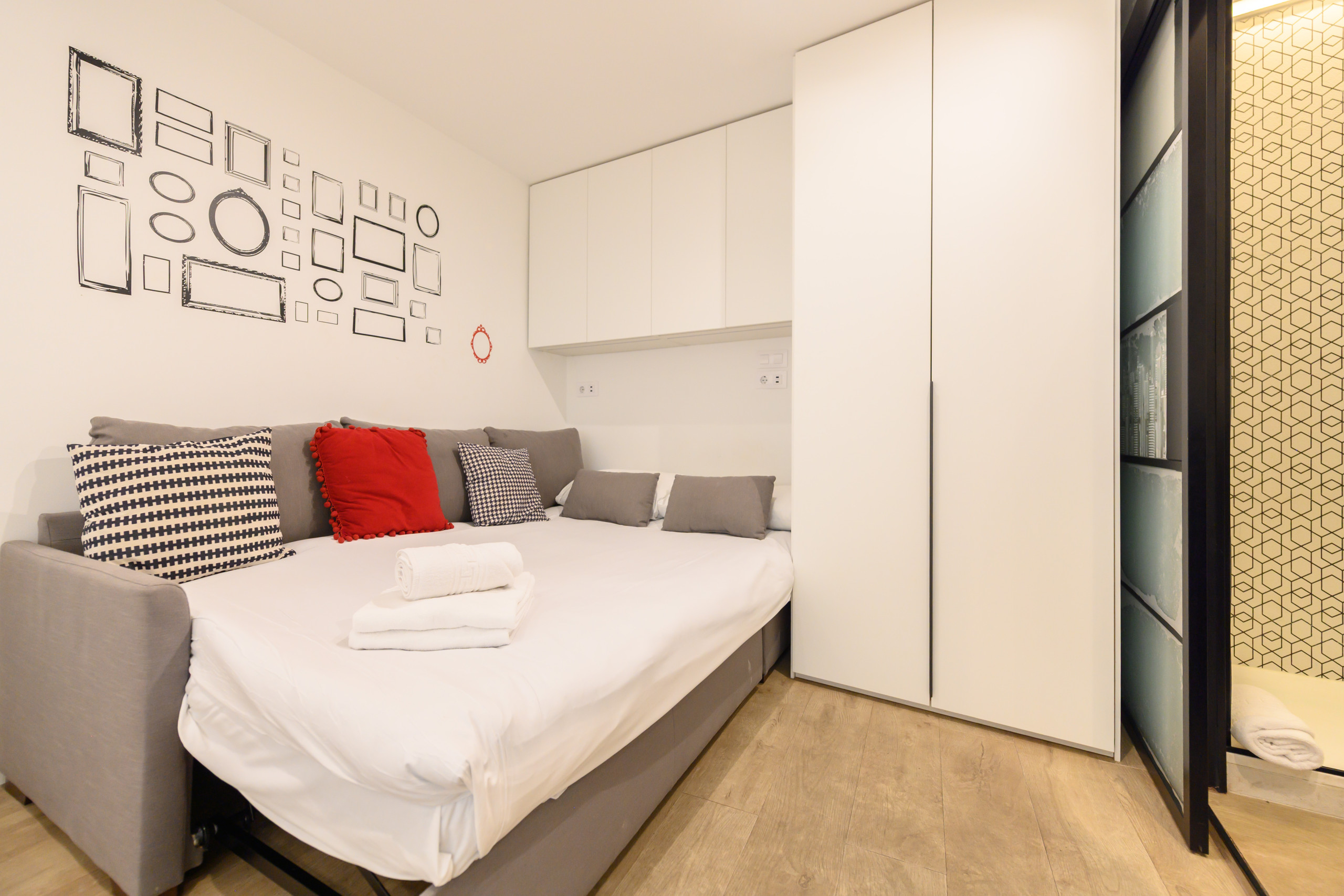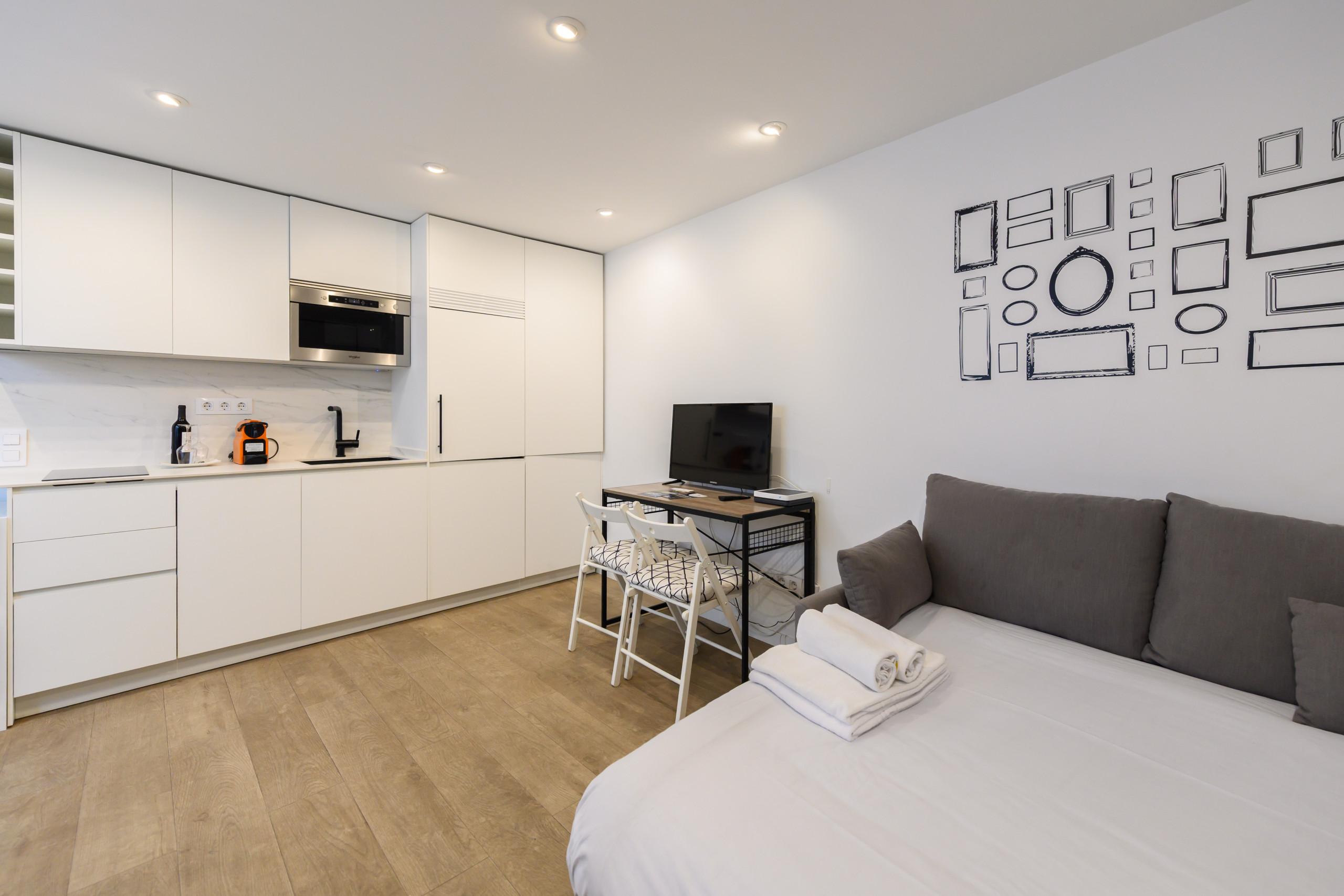 The apartment in Madrid has capacity for 2 people. The apartment is 25 m². The accommodation is equipped with the following items: lift, washing machine, iron, internet (Wi-Fi), hair dryer, heat pump, air-conditioned, open-air parking near the building, 1 TV, satellite tv (Languages: Spanish, English, German, Dutch, French, Russian, Swedish, Norwegian).In the induction open plan kitchen, refrigerator, microwave, freezer, dishes/cutlery, kitchen utensils, coffee machine, toaster, kettle and juicer are provided.