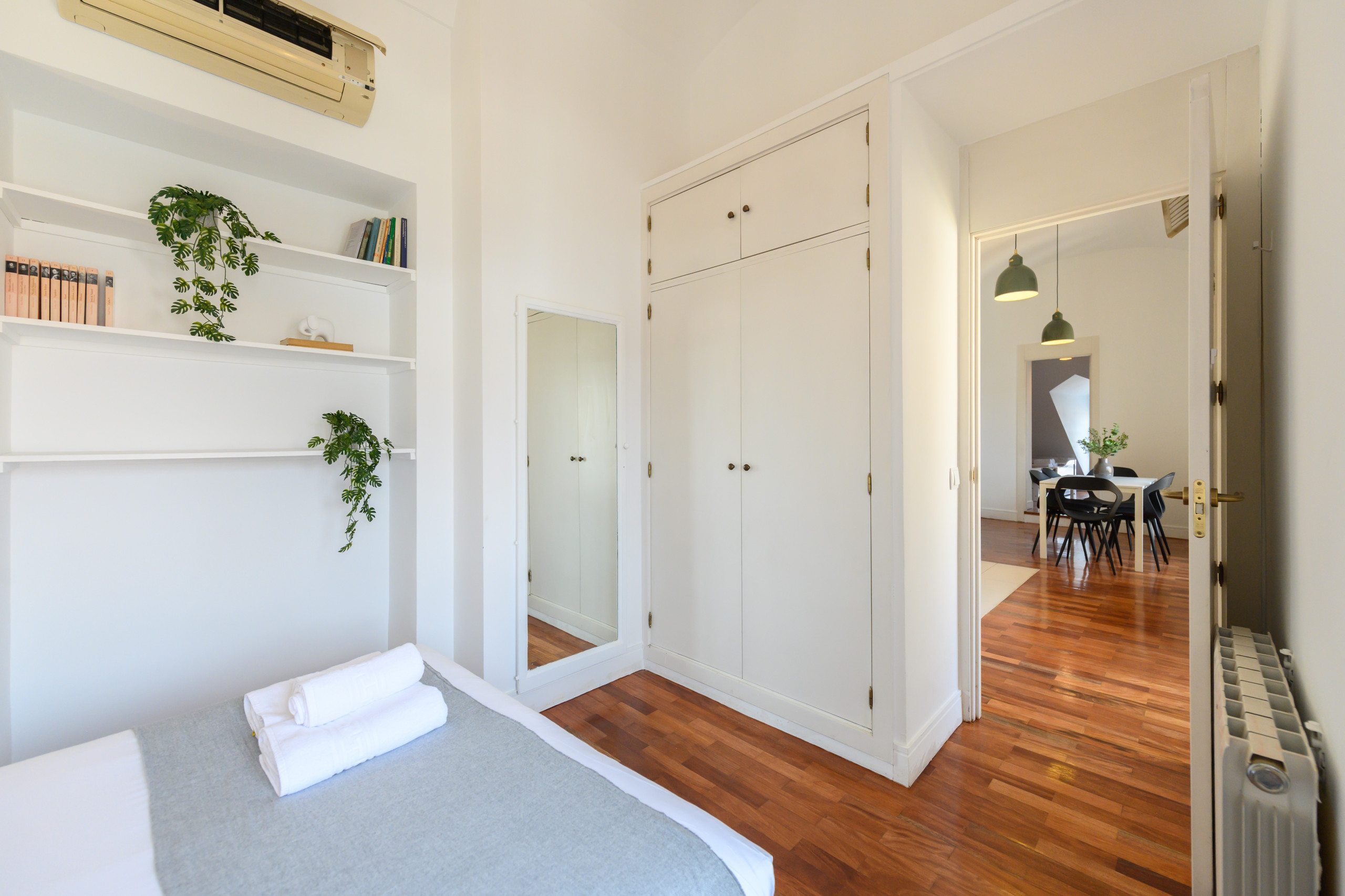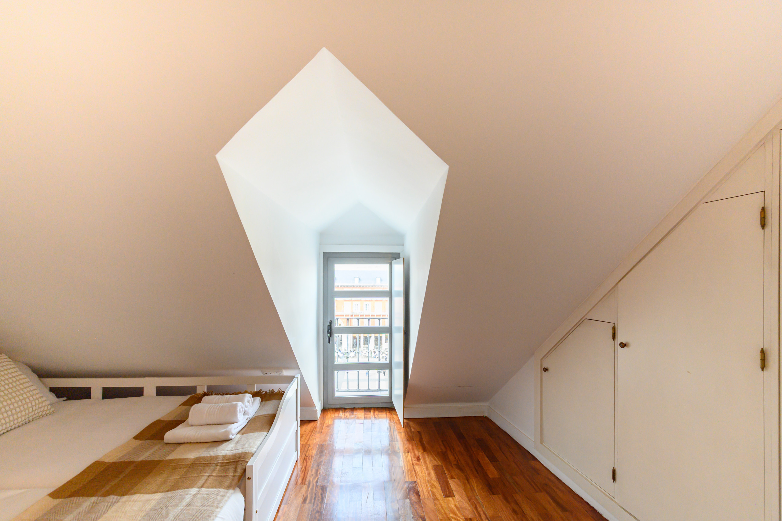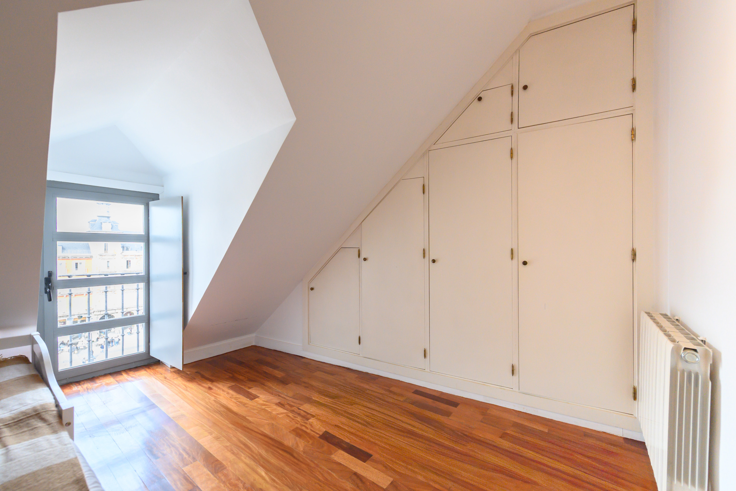 - Bedroom 1: With two double beds, built-in wardrobe, air conditioning, heating, and a balcony with stunning views of Plaza Mayor.