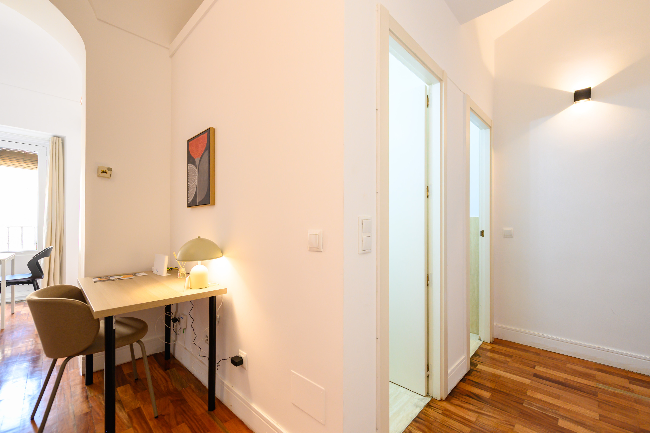 Upon entering the flat, you'll be surprised by the decoration and style. The independent kitchen creates an ideal environment for cooking. The living room, furnished with a comfortable sofa bed and a work desk, offers you a perfect space to relax, work or study.