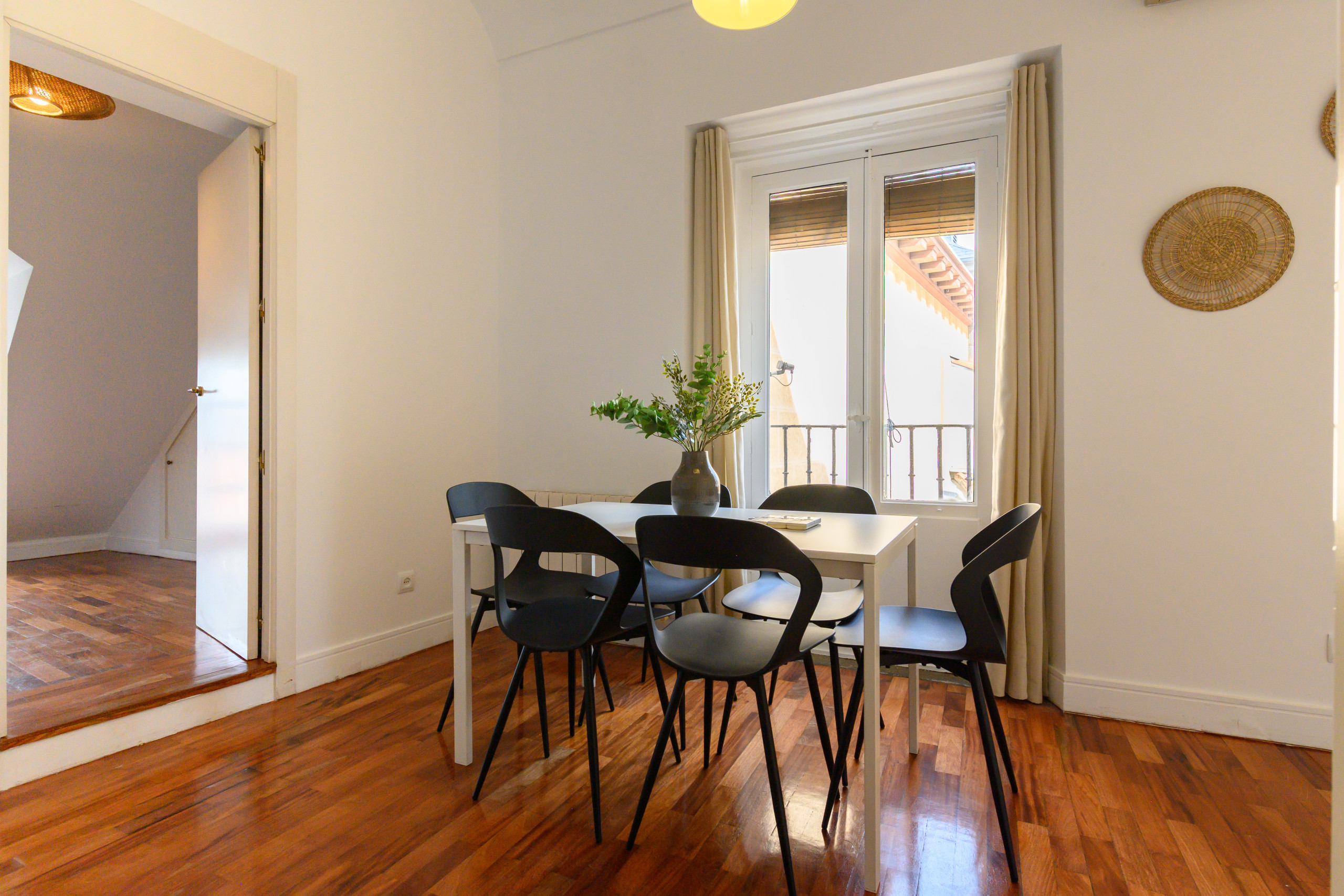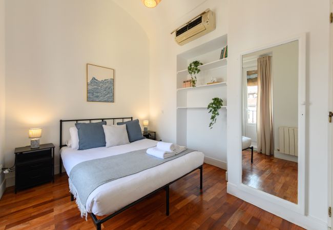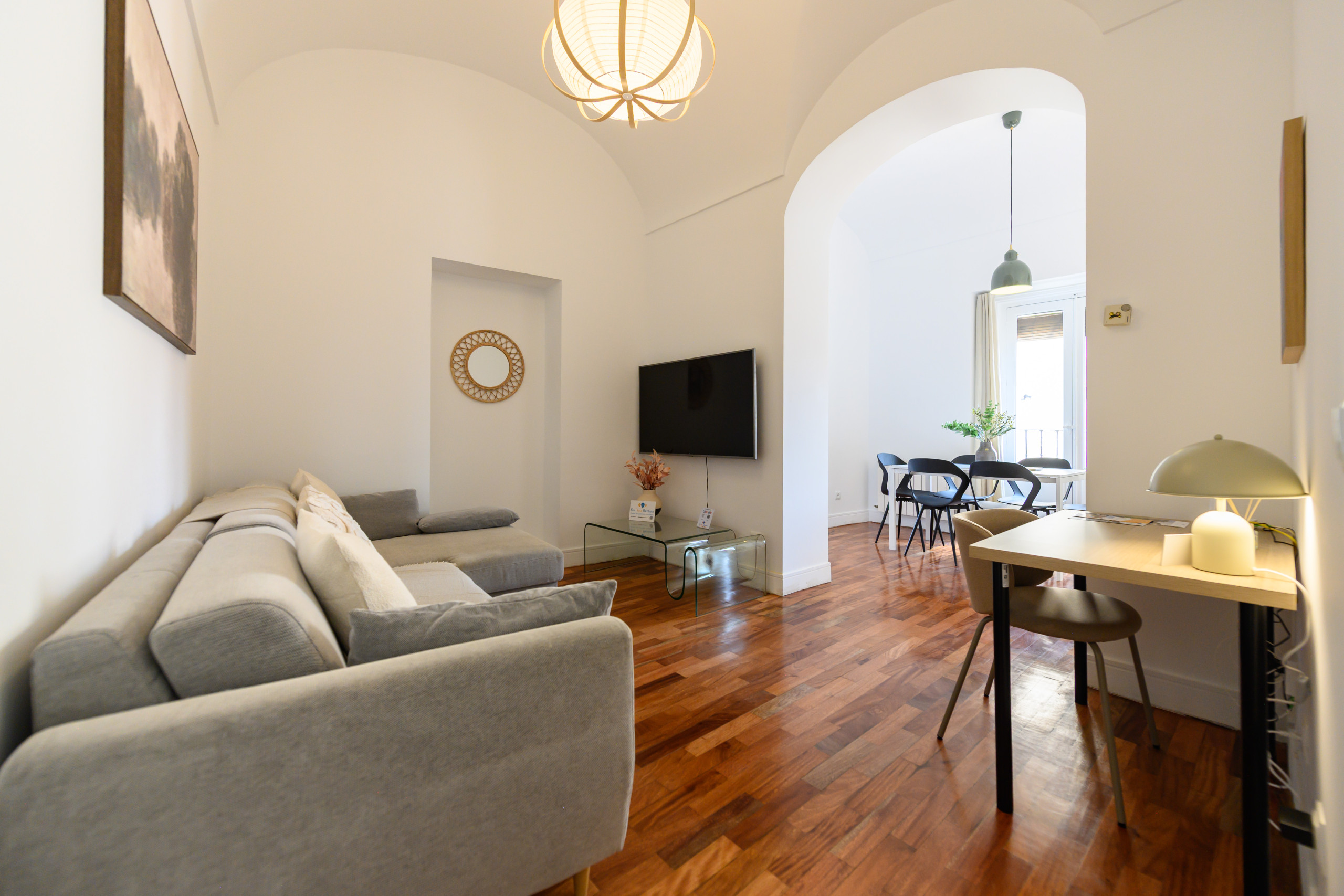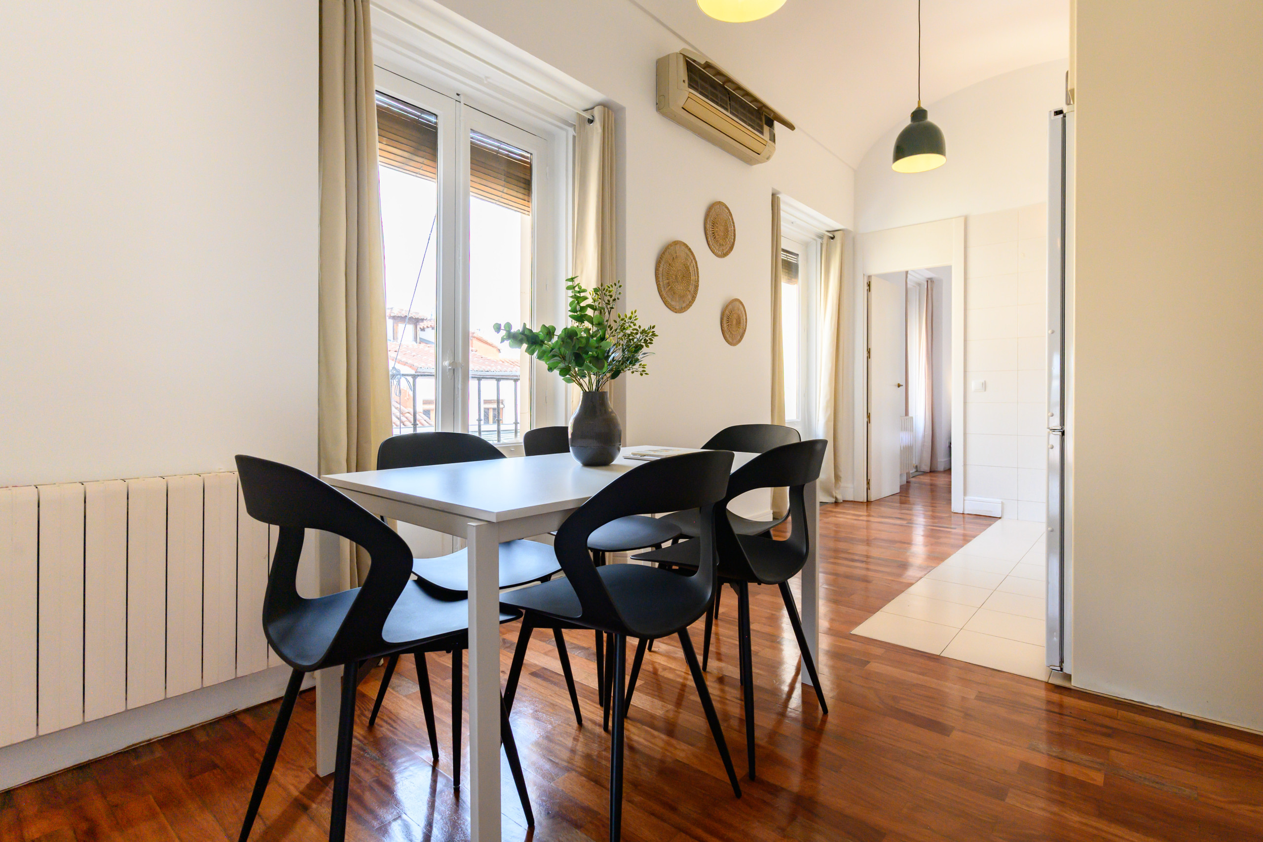 Temporary Rental Flat. This cosy 2-bedroom flat is located in the heart of Embajadores, one of Madrid's most vibrant and popular neighbourhoods. Situated on the fifth floor interior of a building with a lift, it offers a perfect location to enjoy everything the city has to offer. Just a few steps away, you'll find a wide variety of restaurants, bars, shops, supermarkets, theatres, parks and much more. Additionally, the area is excellently connected by public transport, with several metro and bus lines that will allow you to move around the city with ease.