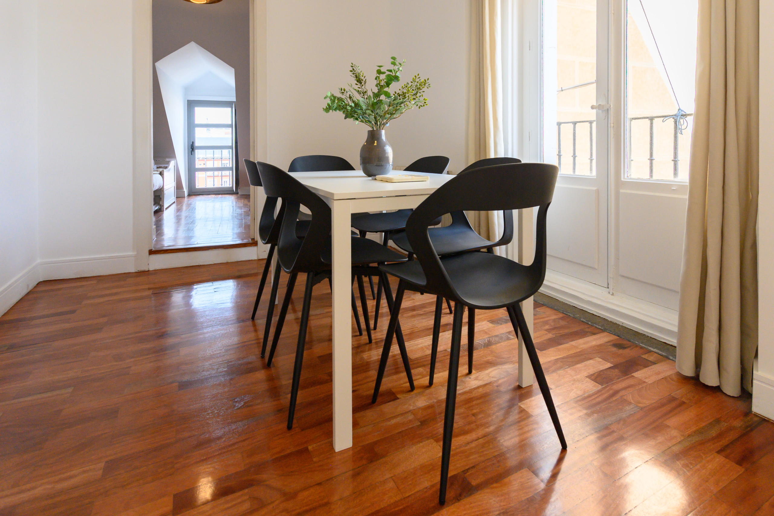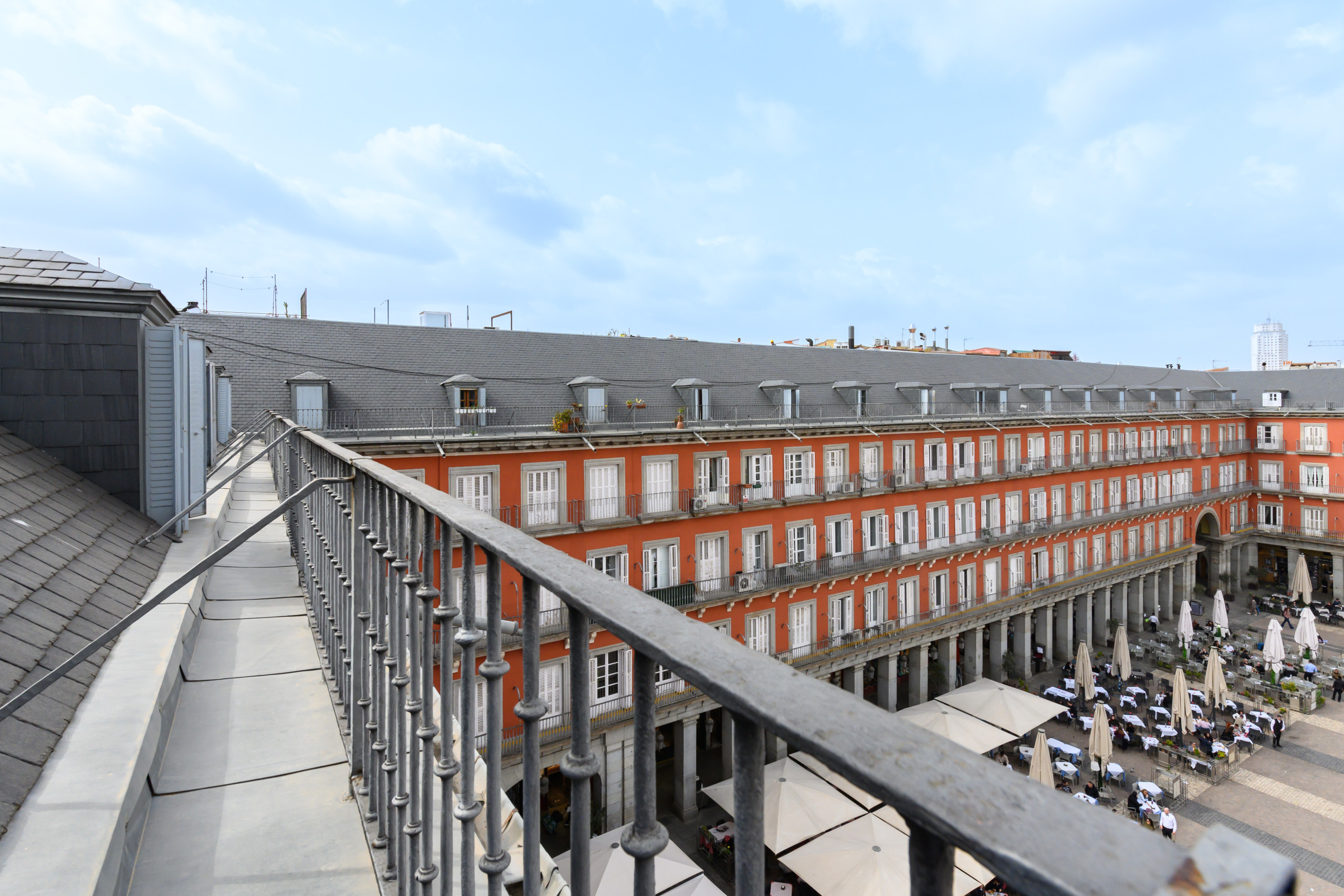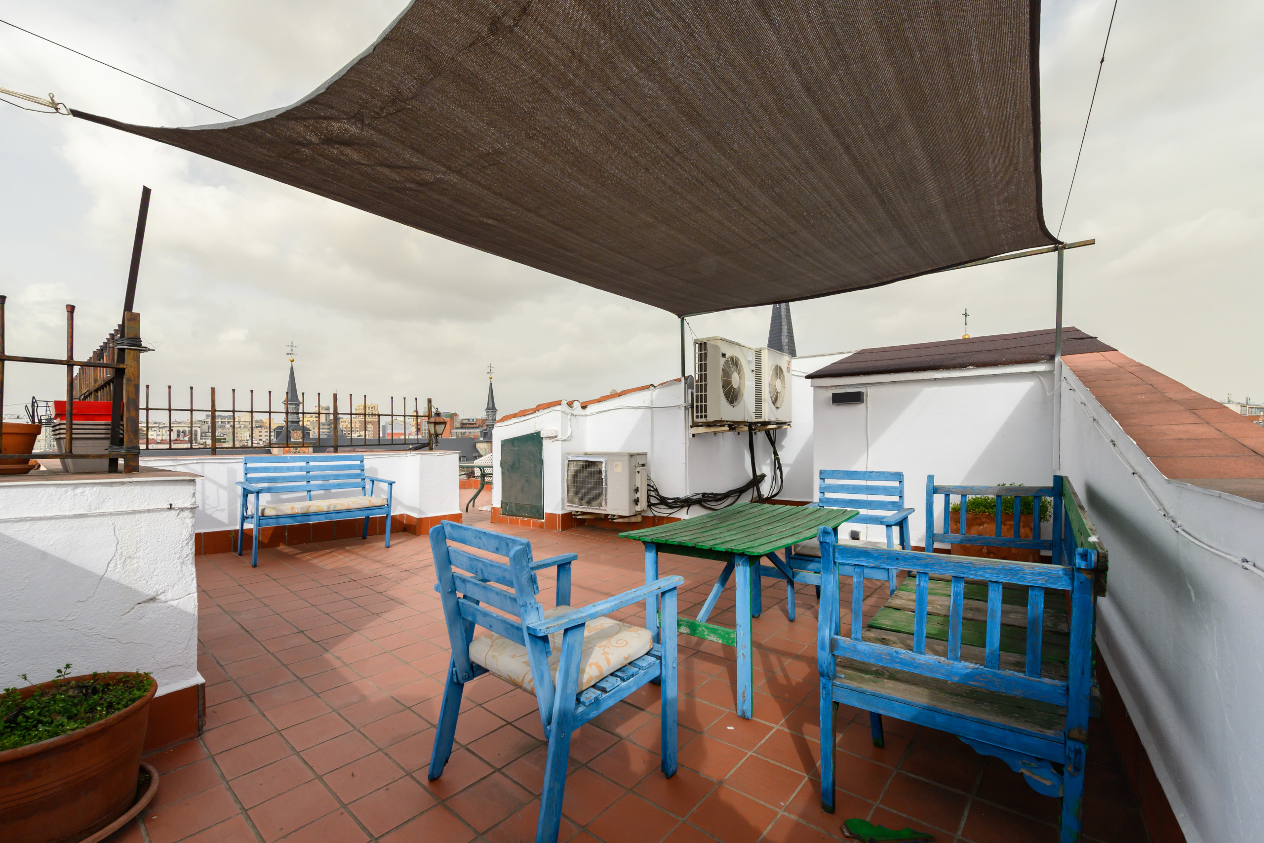 - Terrace: One of the apartment's greatest assets is its large terrace, furnished with a table and chairs, offering spectacular views of Plaza Mayor and the entire city from the heart of Madrid's historic center.