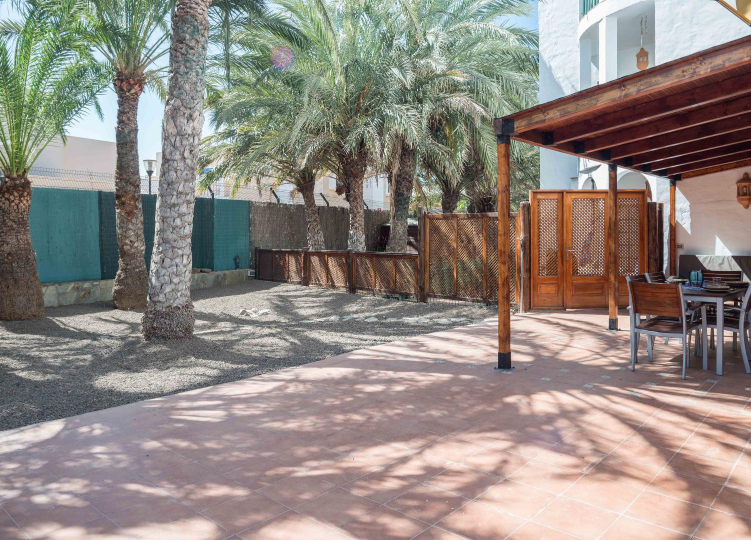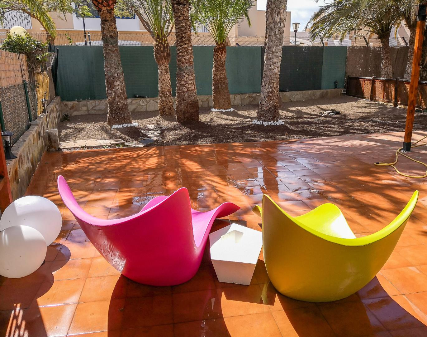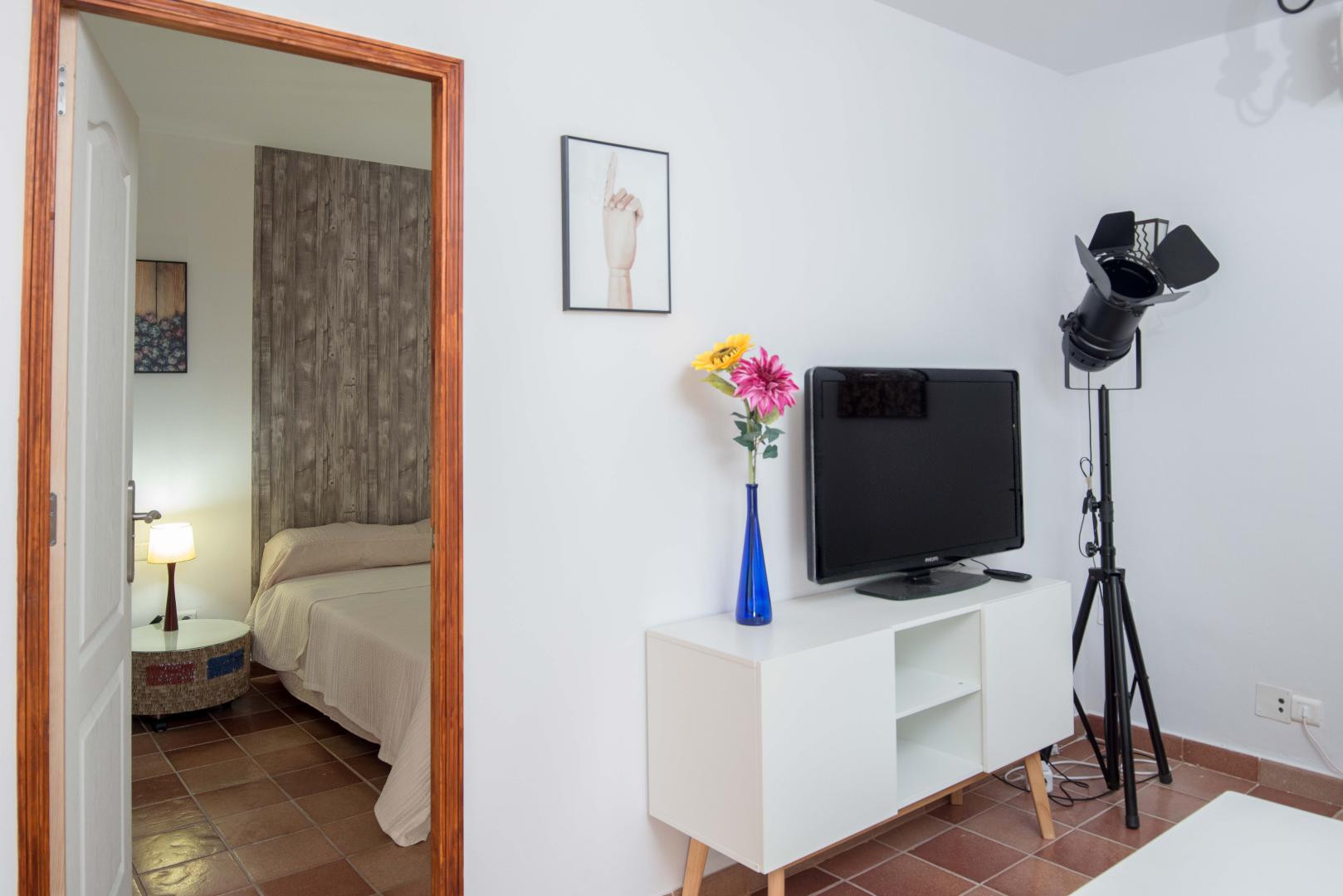 Bahia Feliz is just about 5 min of driving distance from "Playa del Inglés" and another 3 min from the dunes of Maspalomas. Due to its proximity, you can enjoy these beach areas and relax in your private garden afterward. The apartment is about 50 square meters big, has one bedroom, a living room with a comfortable sofabed, a kitchen in "American" style, and an outside dining area in a 100sqm private garden. To mention as well that a stone barbecue is at disposal for the guests.
