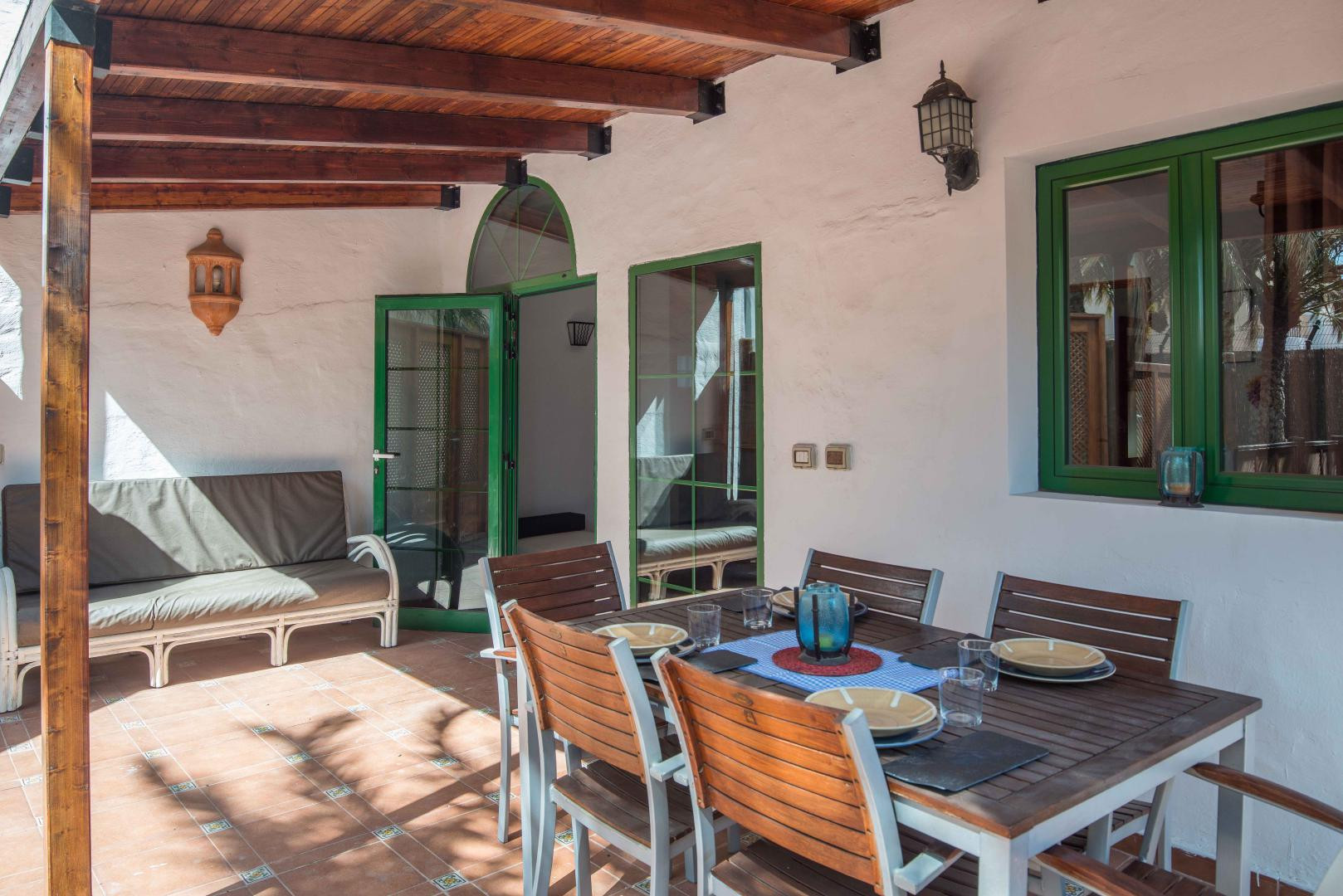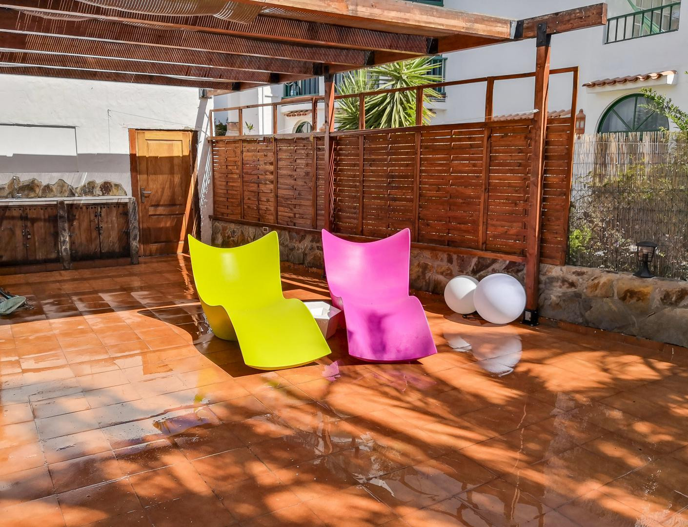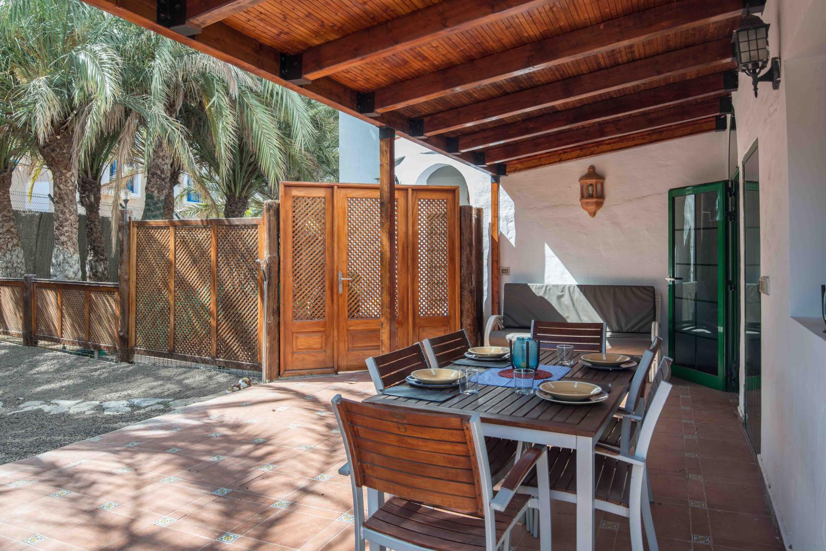 Bahia Feliz is just about 5 min of driving distance from "Playa del Inglés" and another 3 min from the dunes of Maspalomas. Due to its proximity, you can enjoy these beach areas and relax in your private garden afterward. The apartment is about 50 square meters big, has one bedroom, a living room with a comfortable sofabed, a kitchen in "American" style, and an outside dining area in a 100sqm private garden. To mention as well that a stone barbecue is at disposal for the guests.