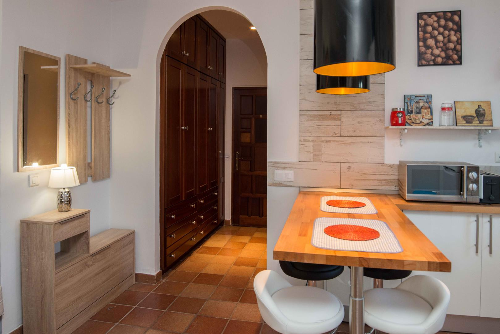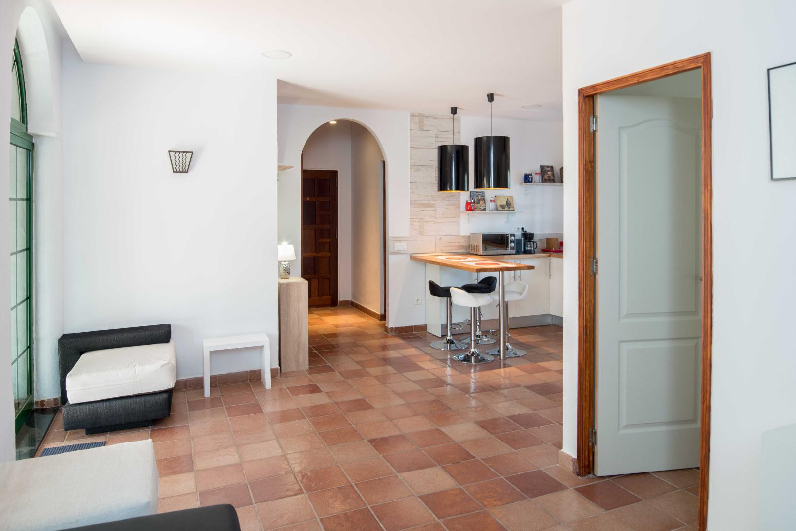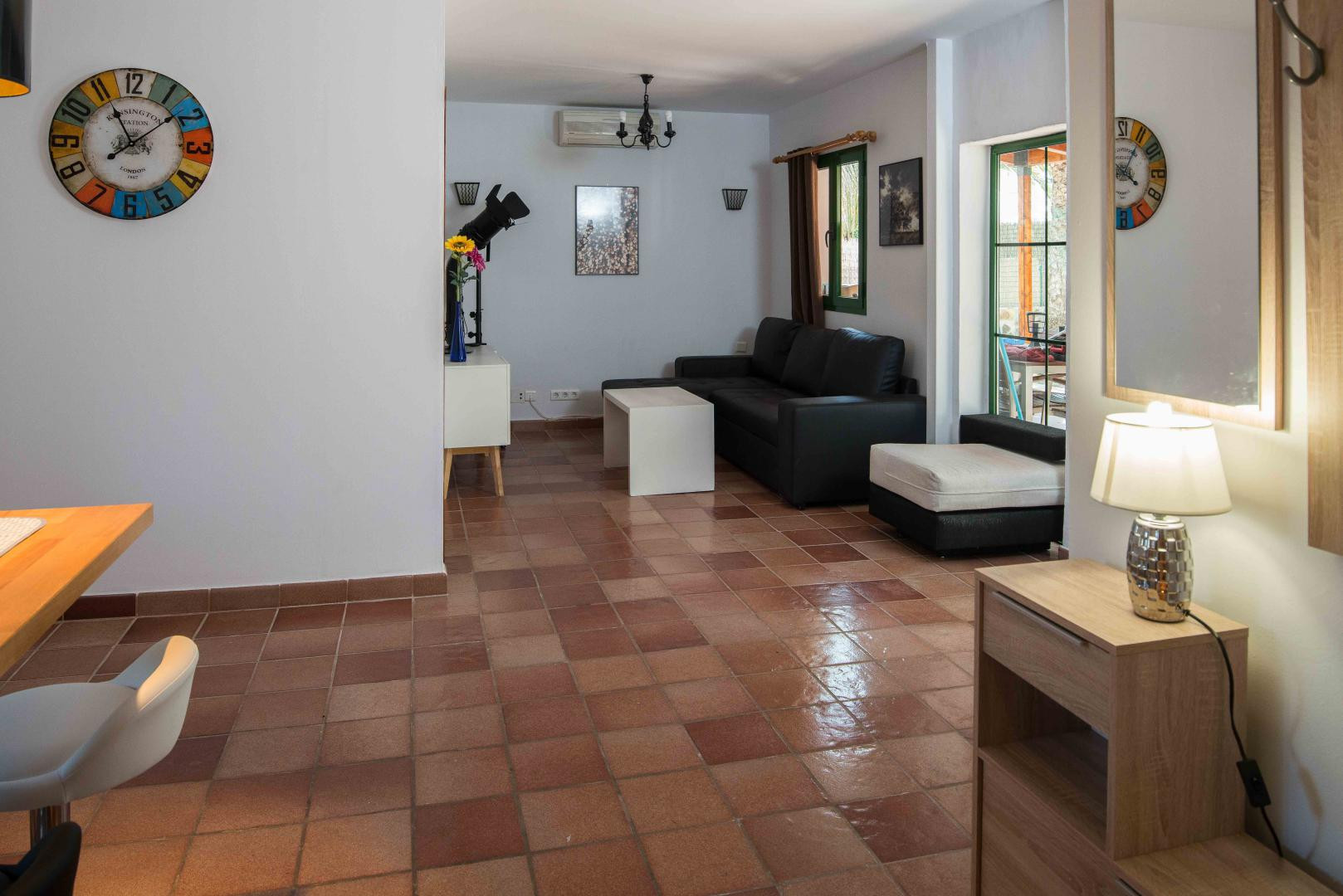 The apartment is very bright and spacious. It offers a vast and private garden area, which makes it especially attractive. Ideal for couples with small children since they can play safely in the restricted garden area. If you are searching for a private space where to enjoy your tranquillity and privacy, this might be the ideal place for you.
