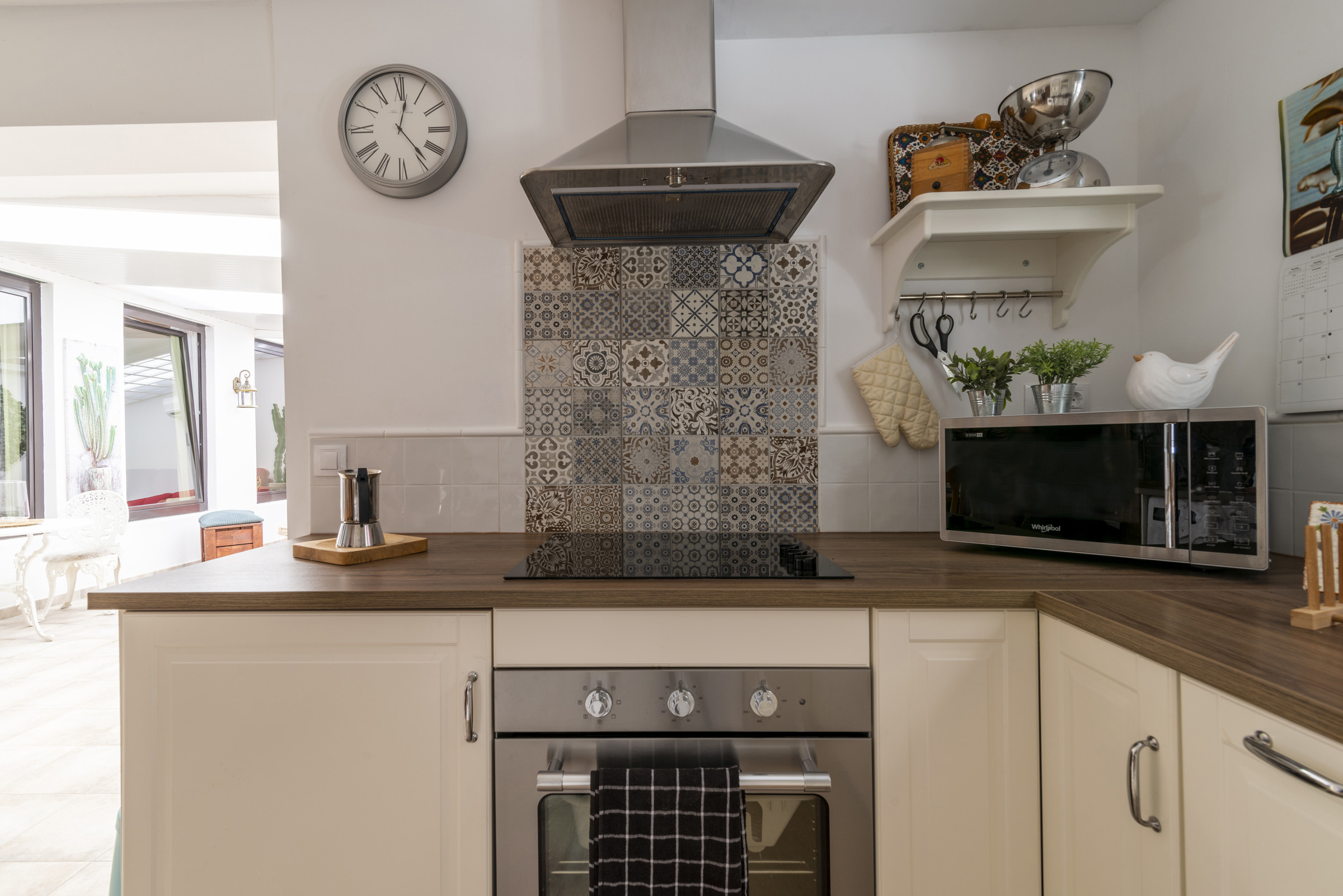 In the electric open plan kitchen, refrigerator, microwave, oven, freezer, dishwasher, dishes/cutlery, kitchen utensils, coffee machine, toaster, kettle and juicer are provided.