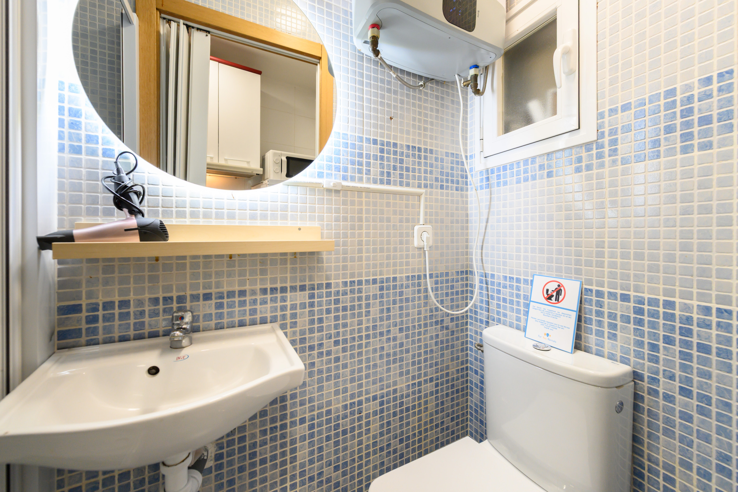 The studio has an independent bathroom, ensuring privacy and comfort. You'll find a shower, a washbasin, and all the necessary amenities.
