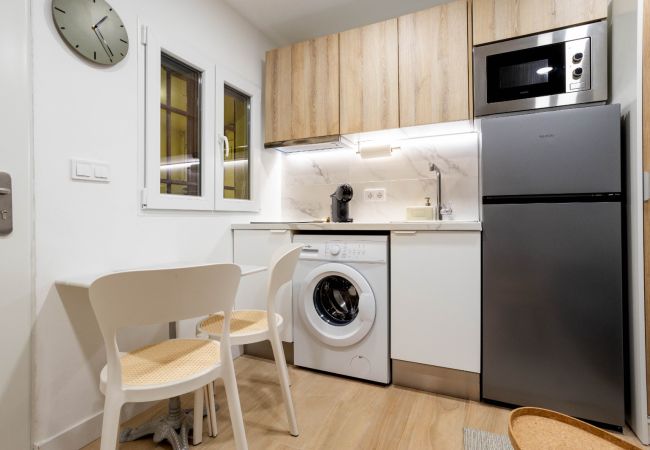 The apartment in Madrid has 1 bedrooms. The apartment is 20 m². The accommodation is equipped with the following items: washing machine, electric heating, TV.In the hotplate of glass ceramics...