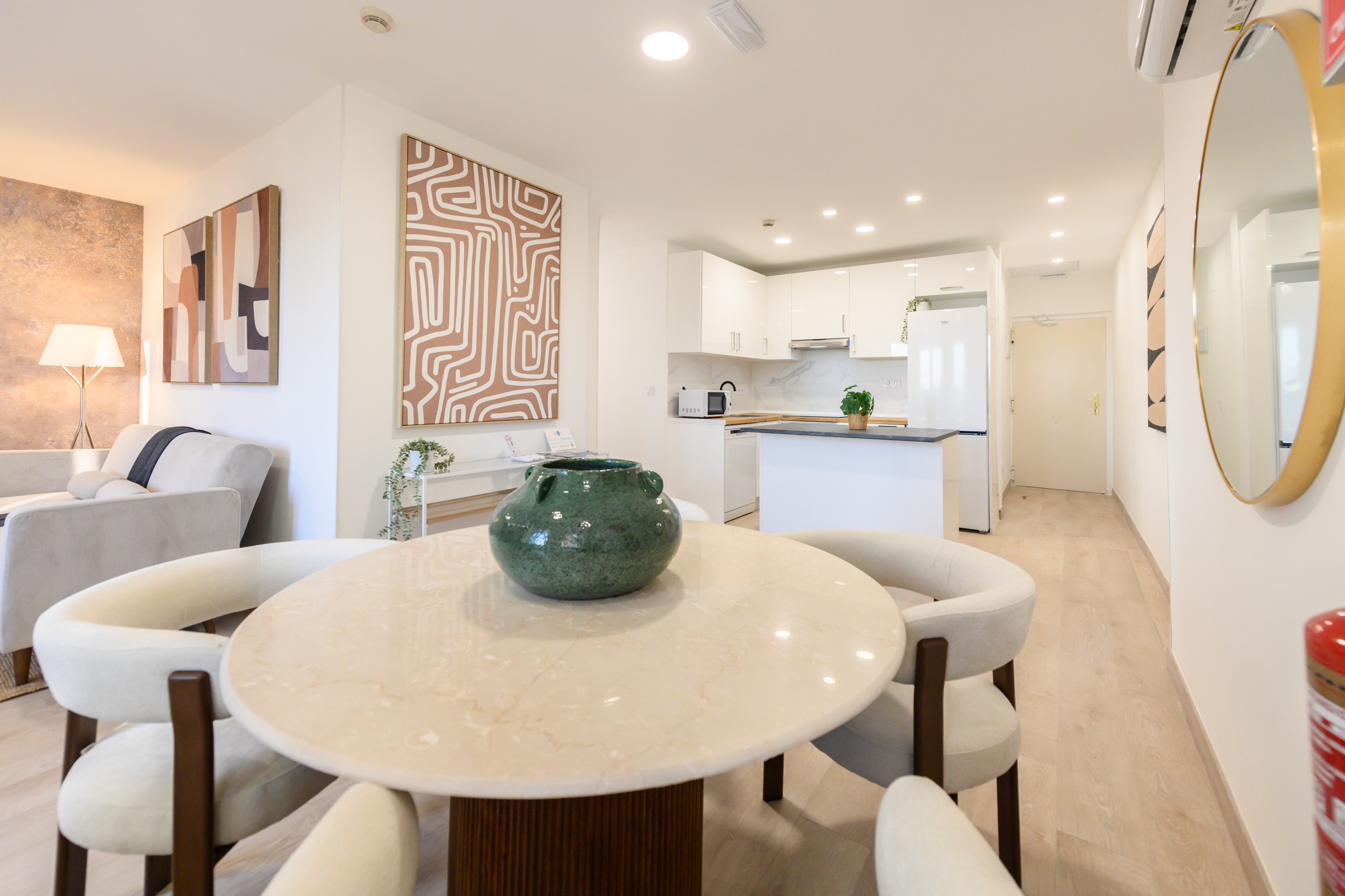 L'appartement dispose d'une cuisine dans le salon, une salle de bains avec une grande douche, un salon et une chambre spacieuse. Il a été récemment rénové et meublé avec un style moderne et minimaliste. Les appareils sont de la dernière génération et sont parfaitement intégrés dans la conception. La chambre est spacieuse et lumineuse, avec double vitrage.