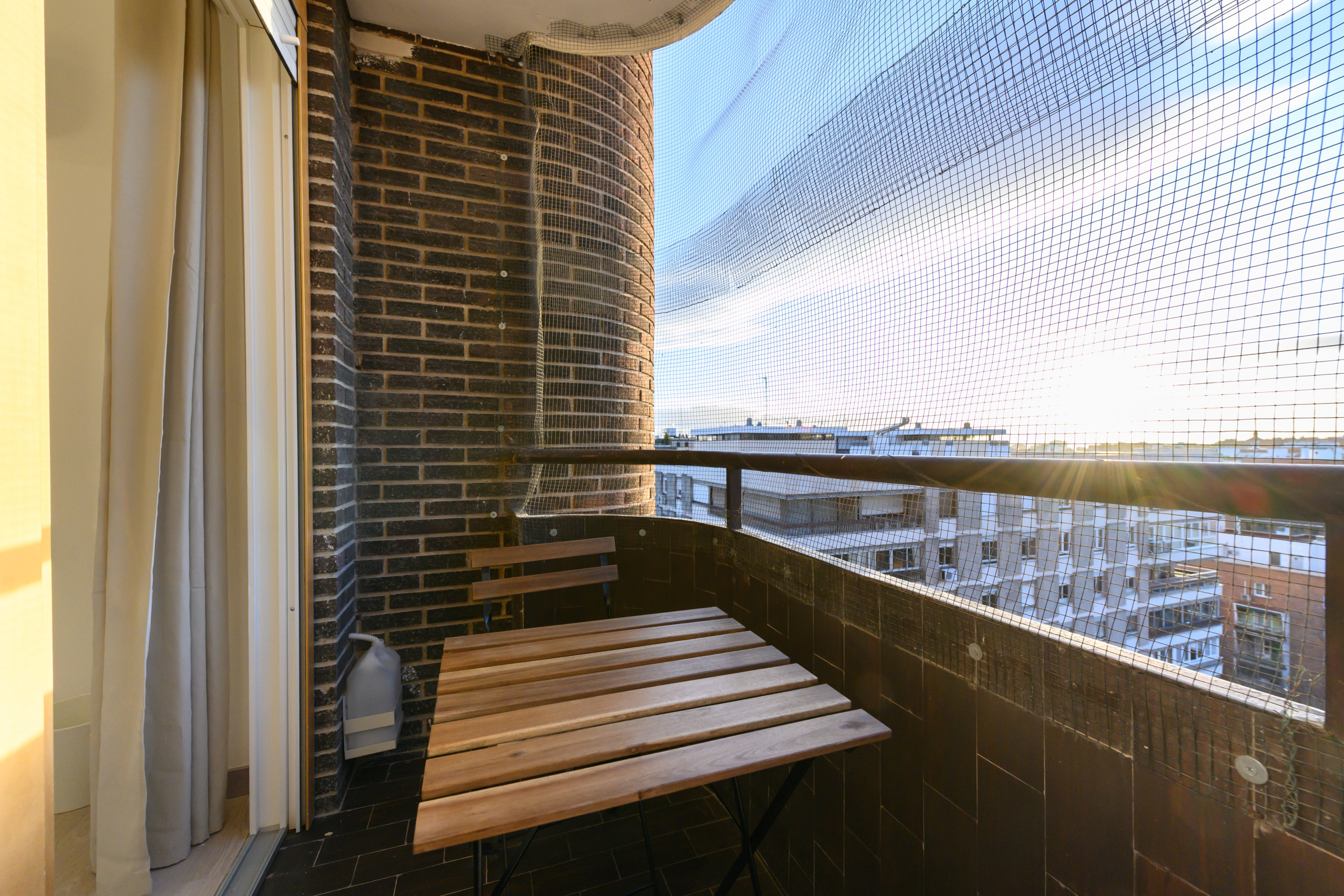 Location meublée de courte durée. Spacieux appartement de luxe avec 2 chambres (chacune avec terrasse) et deux salles de bains. Situé sur l'Avenida Brasil, dans le quartier de Tetuán à Madrid, l'un des plus pratiques et bien desservis de la ville. L'appartement, orienté vers l'extérieur, a été récemment rénové. Niché dans un quartier résidentiel calme et sûr, il est idéal pour les séjours professionnels, les études ou simplement pour profiter pleinement de la ville en tout confort.