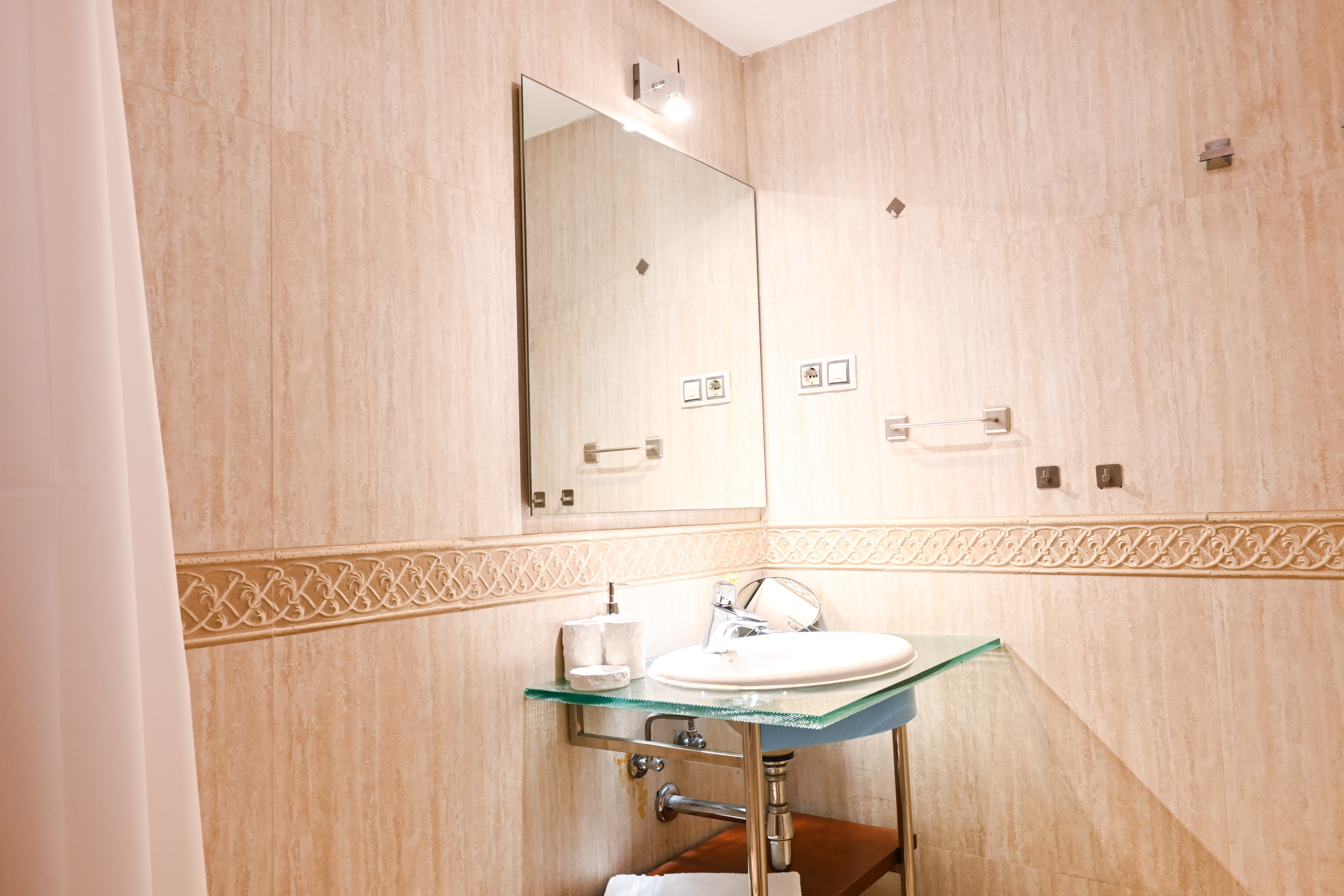 La salle de bain complète est équipée d'une douche, d'un meuble lavabo avec miroir et de tous les éléments nécessaires à votre confort.