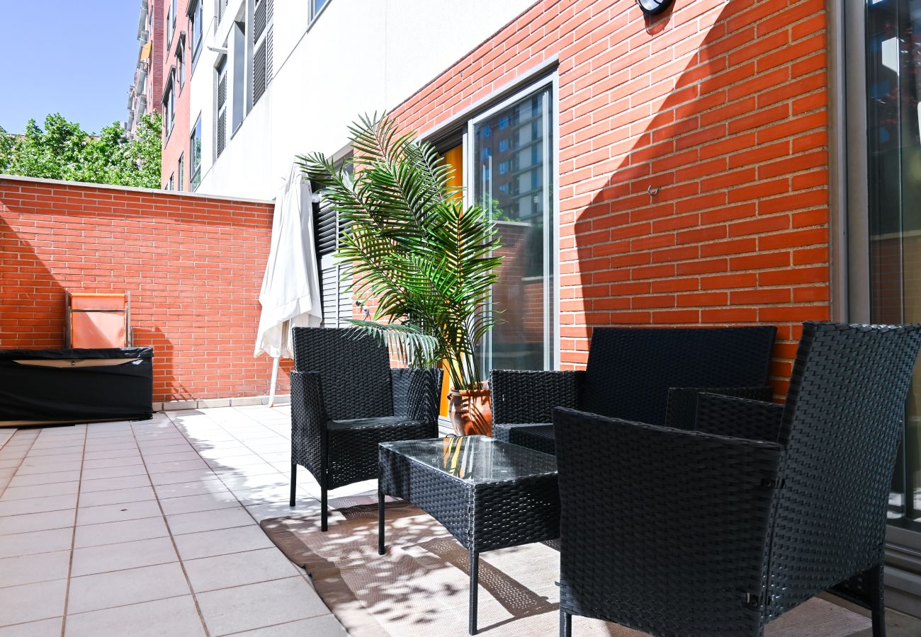 Mais ce n'est pas tout. Cet appartement dispose également d'un charmant patio intérieur, meublé de meubles d'extérieur confortables et orné de plantes luxuriantes, où vous pourrez profiter de moments de calme en plein air ou organiser des dîners en plein air sous les étoiles.