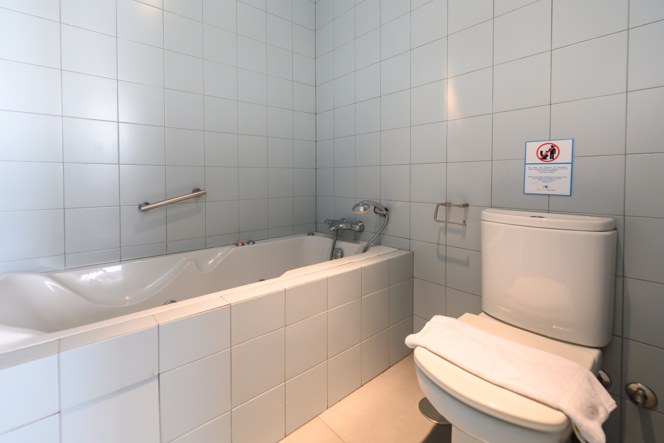 • Deux salles de bains complètes, équipées de toilettes, baignoire, douche, double vasque et miroir.