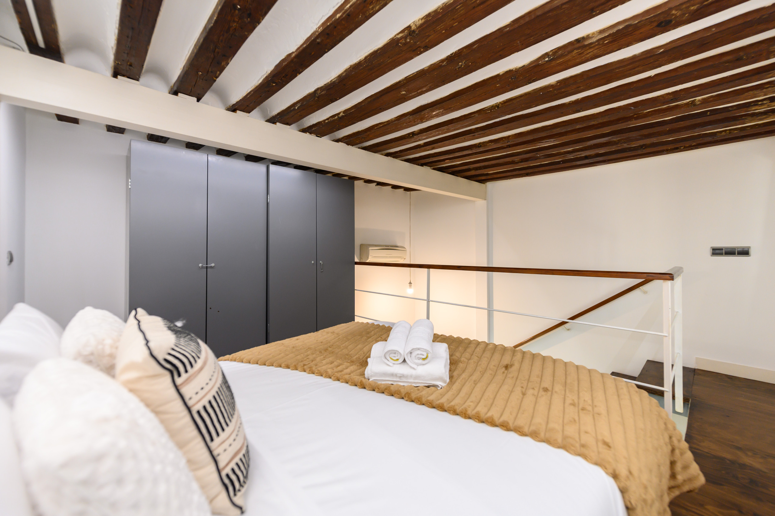 Location meublée. Spacieux, moderne et lumineux duplex situé en plein cœur de Madrid, rue Espíritu Santo, dans le quartier de Malasaña. L'appartement dispose de trois lits doubles et de deux salles de bains. Entièrement meublé et équipé, il est prêt à vous accueillir et se distingue par son agencement optimal, ses volumes généreux et sa luminosité exceptionnelle, offrant un cadre idéal pour un séjour confortable et agréable.