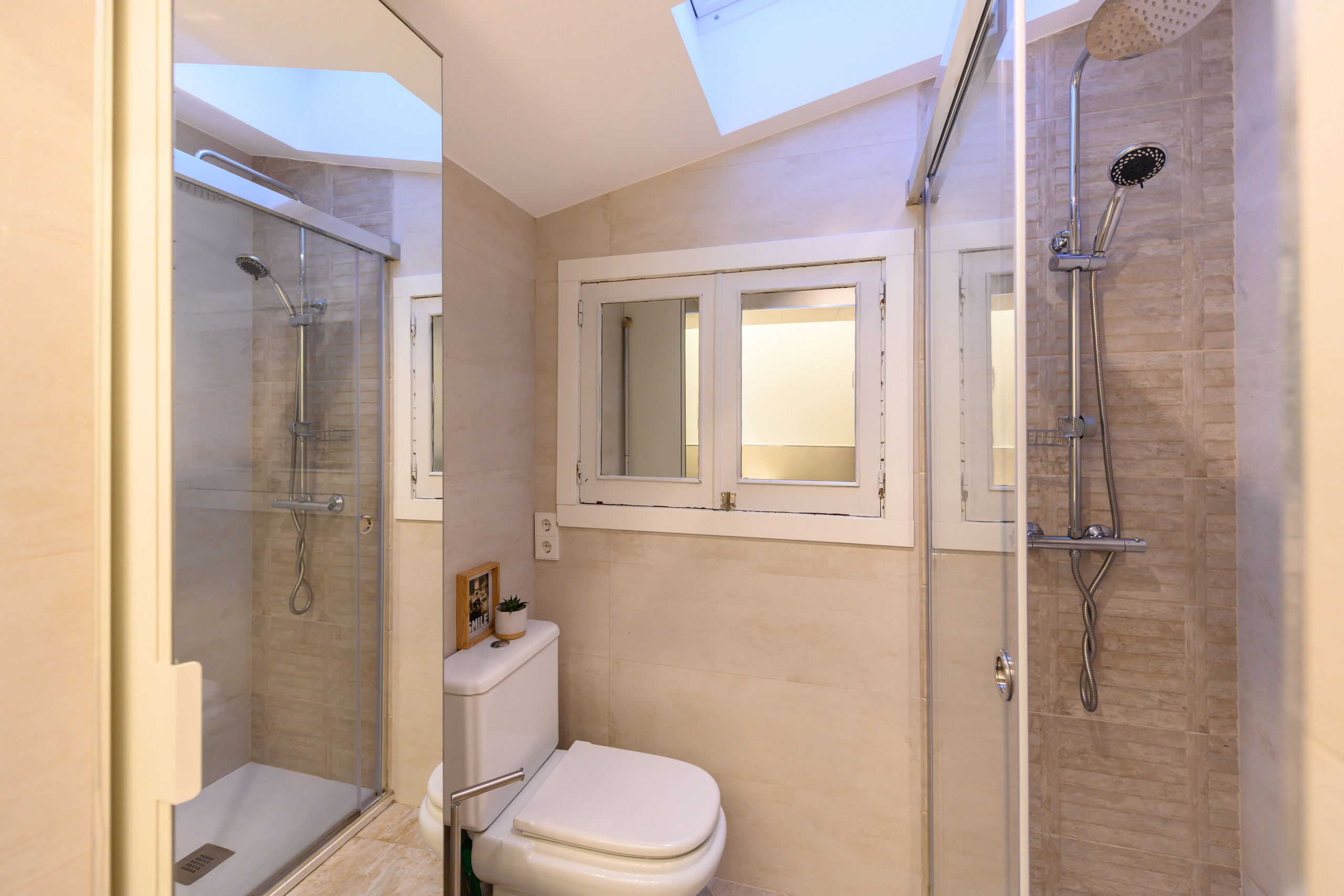 • Une salle de bain complète avec WC, douche, miroir et rangements.