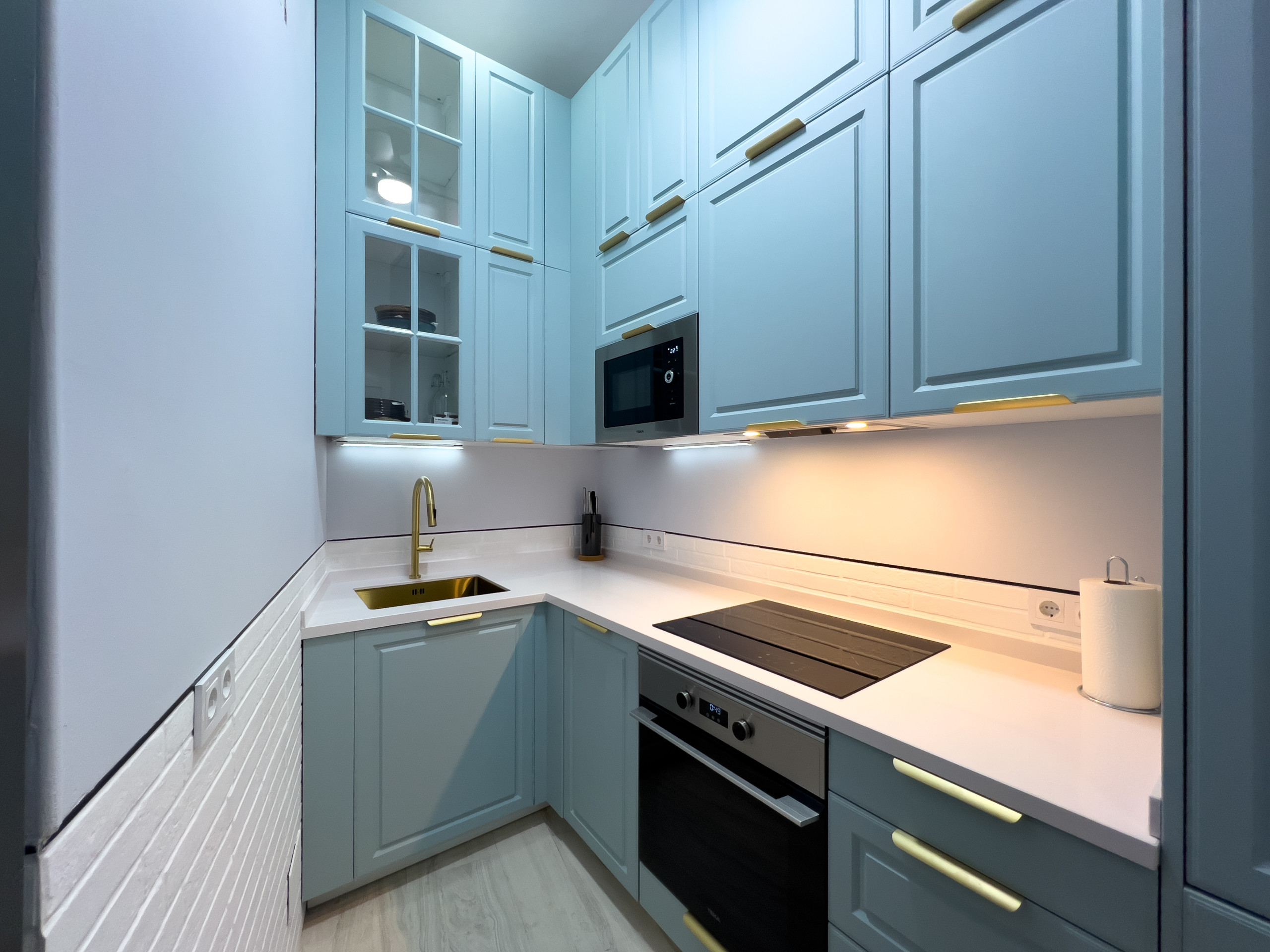 En entrant dans l'appartement, vous serez accueilli par un salon-salle à manger, où l'attention aux détails et le design raffiné sont évidents dans chaque coin. Les meubles soigneusement sélectionnés et les touches de décoration moderne créent une ambiance chaleureuse et sophistiquée. De plus, le salon dispose d'un canapé-lit qui se transforme facilement en un lit supplémentaire pour accueillir des invités supplémentaires.