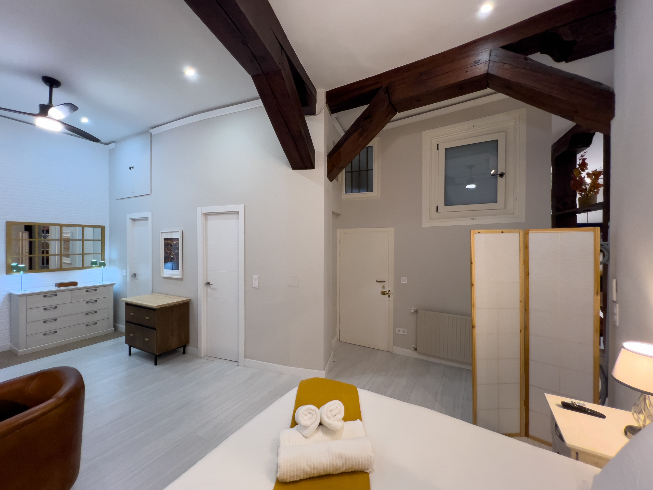 Profitez de votre séjour dans ce Loft de luxe lumineux et spacieux de 95m2 de design historique au cœur de la vieille ville, entièrement rénové, idéal pour 4 personnes, entièrement équipé avec tous les éléments et meubles de qualité "flambant neufs" entre le quartier des Austrias et La Latina, Madrid.
