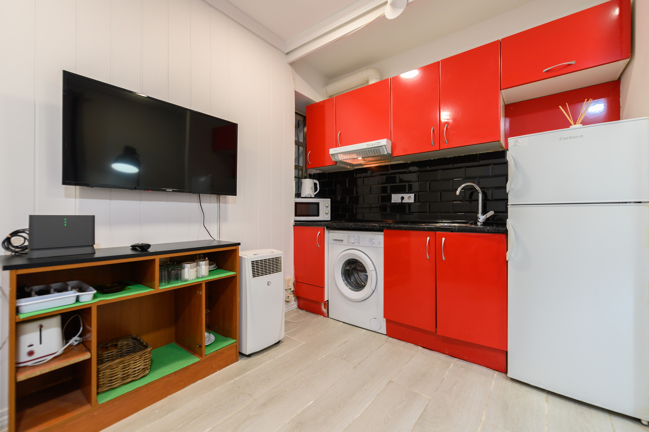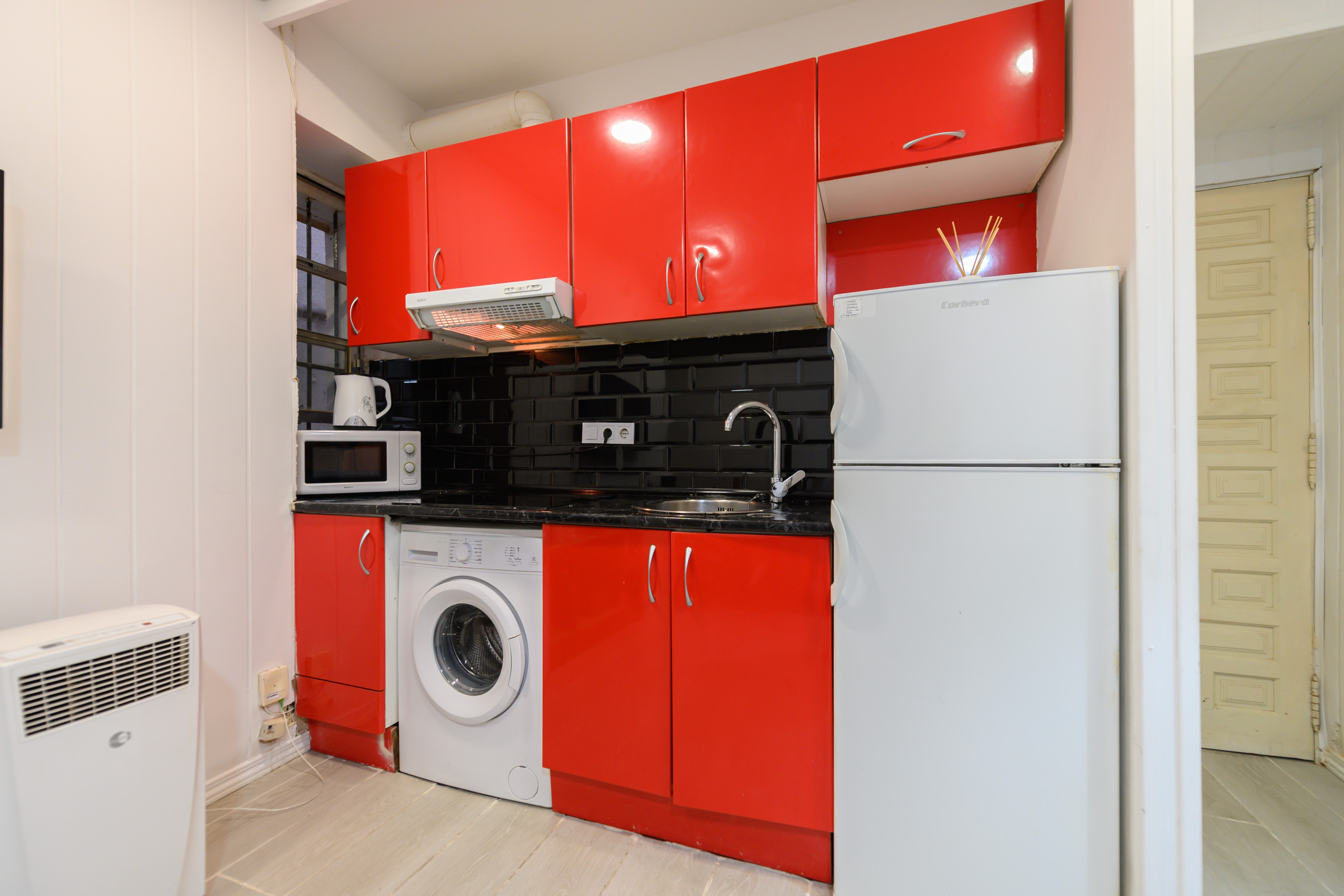 La cuisine est entièrement intégrée et équipée de tout ce dont vous avez besoin pour cuisiner vos propres repas pendant votre séjour, des ustensiles aux appareils électroménagers. De plus, l'appartement dispose de petits détails qui vous feront profiter d'un séjour inégalé, comme un éclairage chaleureux et accueillant et tout ce dont vous avez besoin pour vous détendre et profiter de votre temps libre.