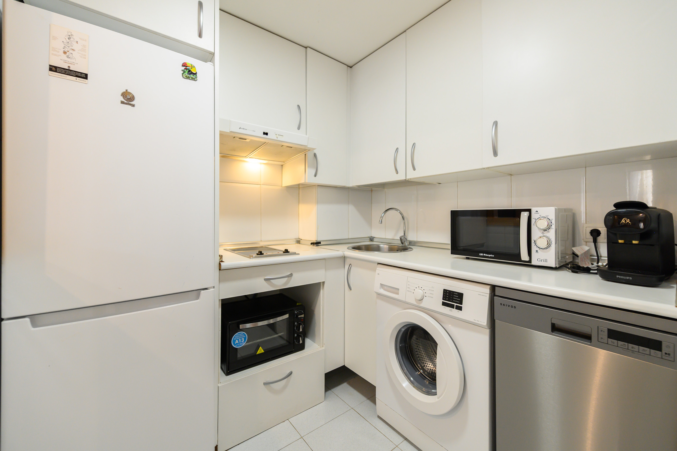 • Cuisine entièrement équipée avec réfrigérateur, micro-ondes, four, lave-linge, lave-vaisselle, cafetière, ustensiles et rangements, conçue pour répondre à tous vos besoins quotidiens.