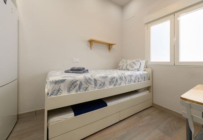 En entrant, vous vous retrouverez dans l’espace principal du studio. Ici, vous trouverez un canapé-lit qui est une pièce maîtresse polyvalente. Pendant la journée, c’est un coin lecture confortable ou un endroit pour se détendre tout en planifiant vos aventures à Madrid. La nuit, il devient un lit confortable pour un repos reposant.