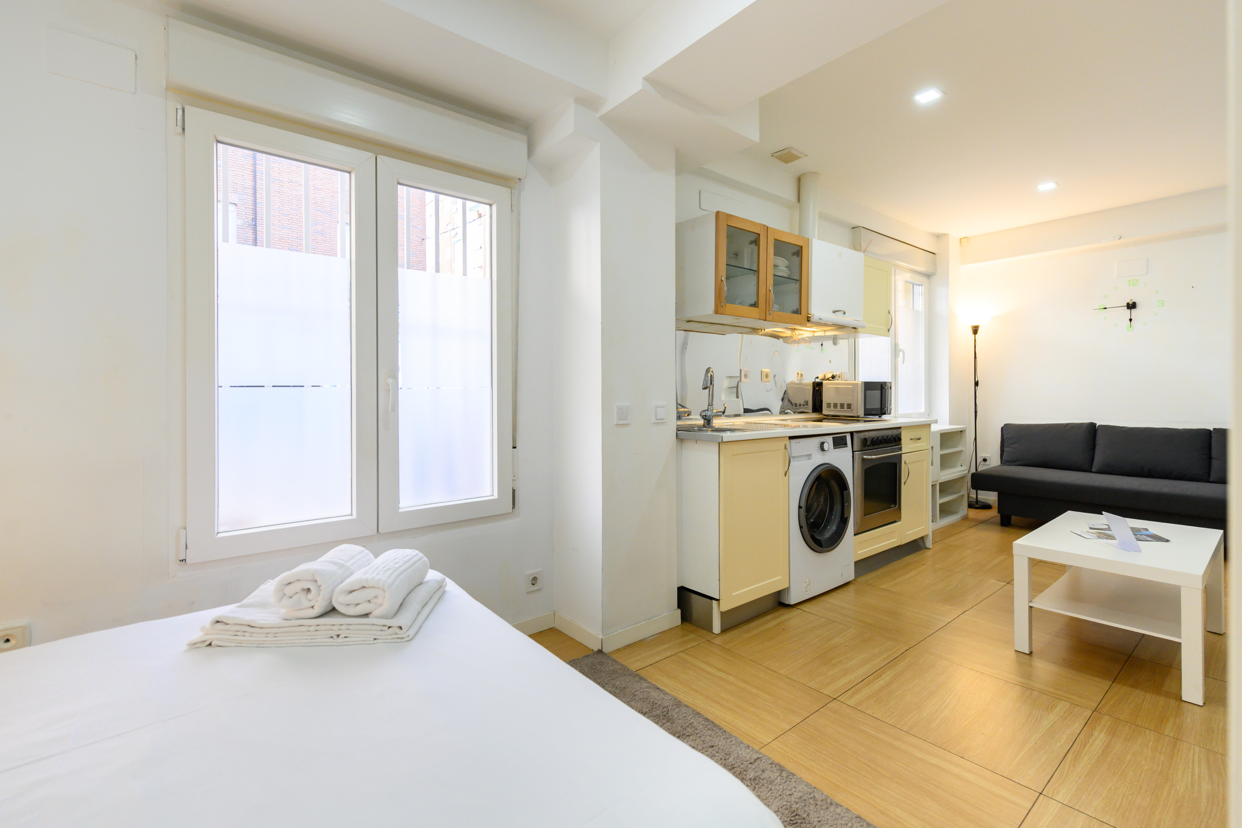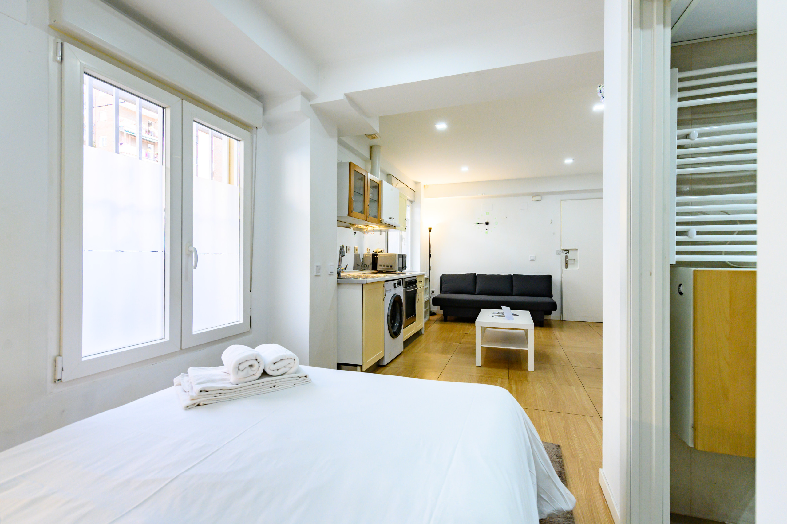 En bref : Un studio entièrement équipé, fonctionnel et très lumineux, idéal pour un séjour confortable et pratique à Madrid. Profitez pleinement de la ville dès votre arrivée.