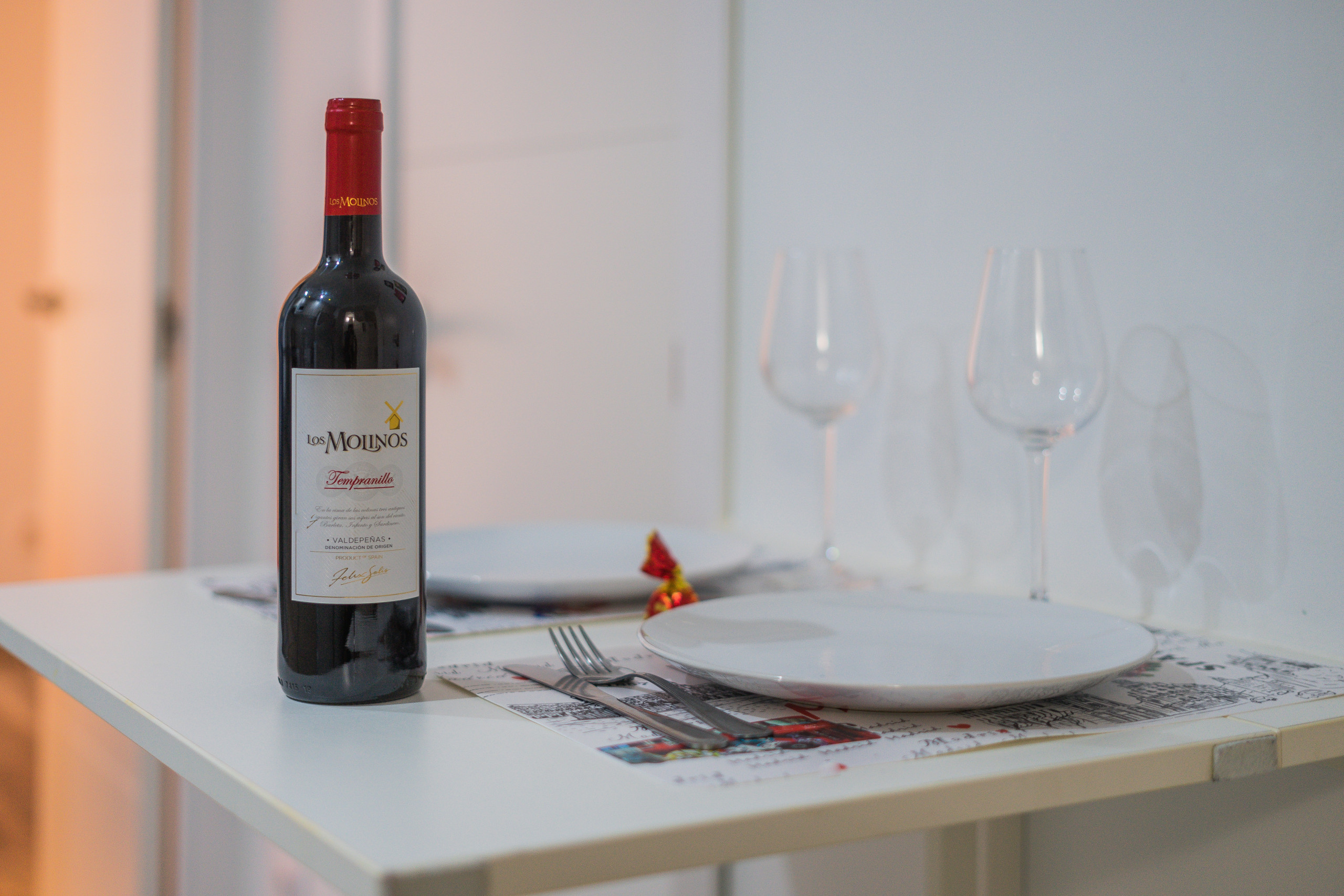 La cuisine américaine, à vitrocéramique, est équipée avec réfrigérateur et micro-ondes.