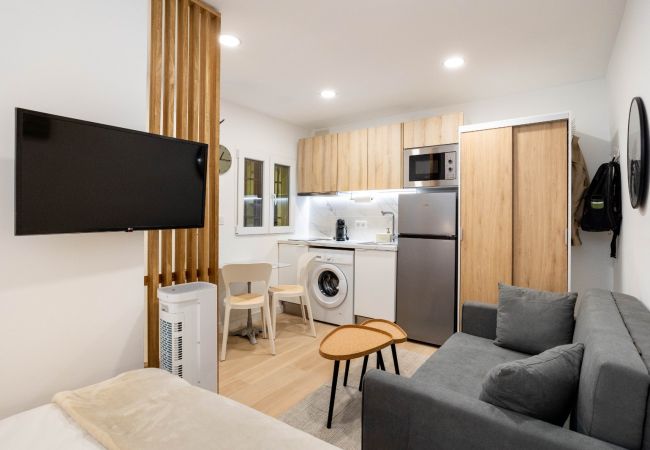 El apartamento en Madrid posee 1 dormitorio(s). Alojamiento de 20 m². Dispone de lavadora, calefacción radiadores eléctricos, Televisión.La cocina americana, de vitrocerámica, está...